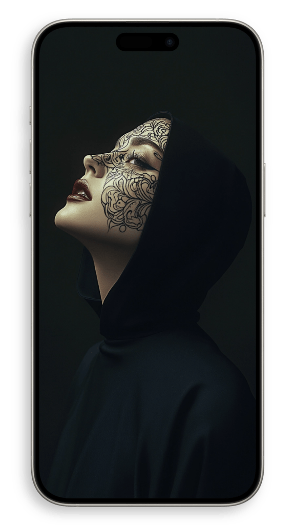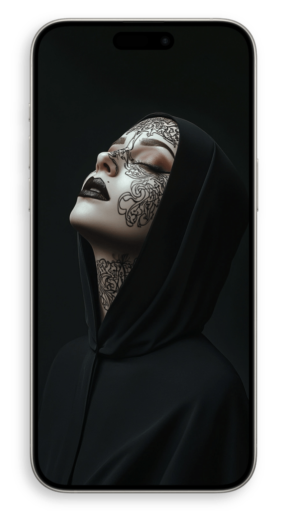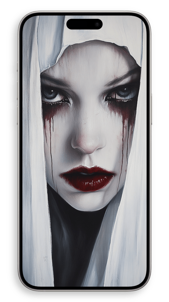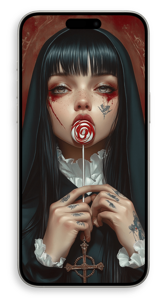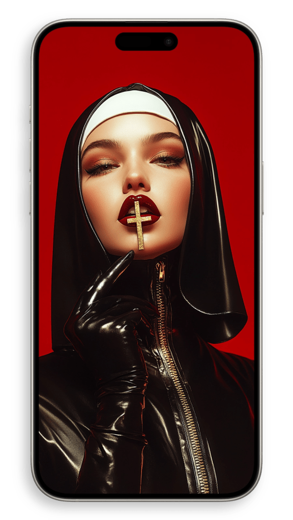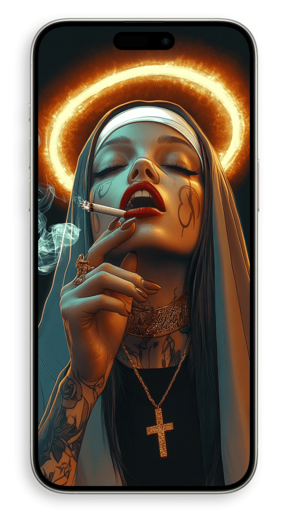 In a beautiful setting, perhaps in a dimly lit chapel or a serene garden, she appears surrounded by warm light, as if touched by a heavenly glow. The subtle details of her robes and the gentle curves of her face convey both strength and serenity, embodying a life of quiet faith and dedication. There’s a timeless beauty in her humility, an aura of grace that seems to transcend the earthly world, making her not just a figure of religious devotion but a symbol of inner peace and spiritual harmony.