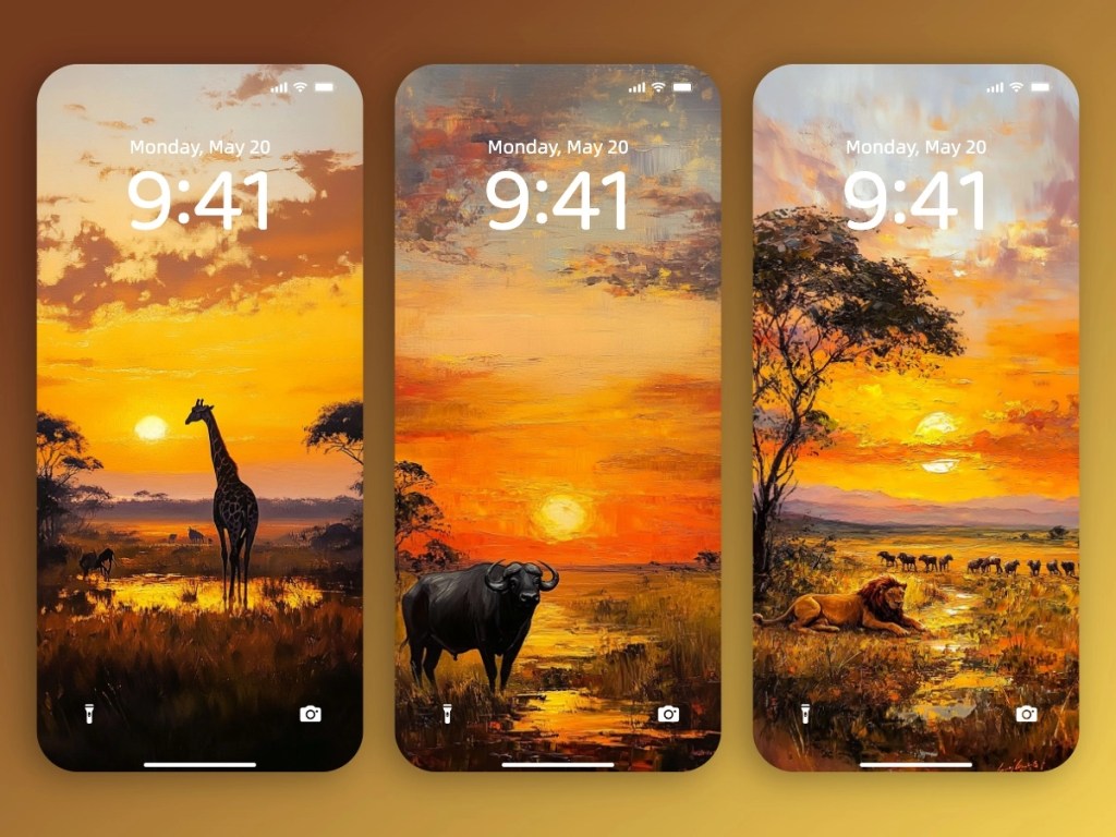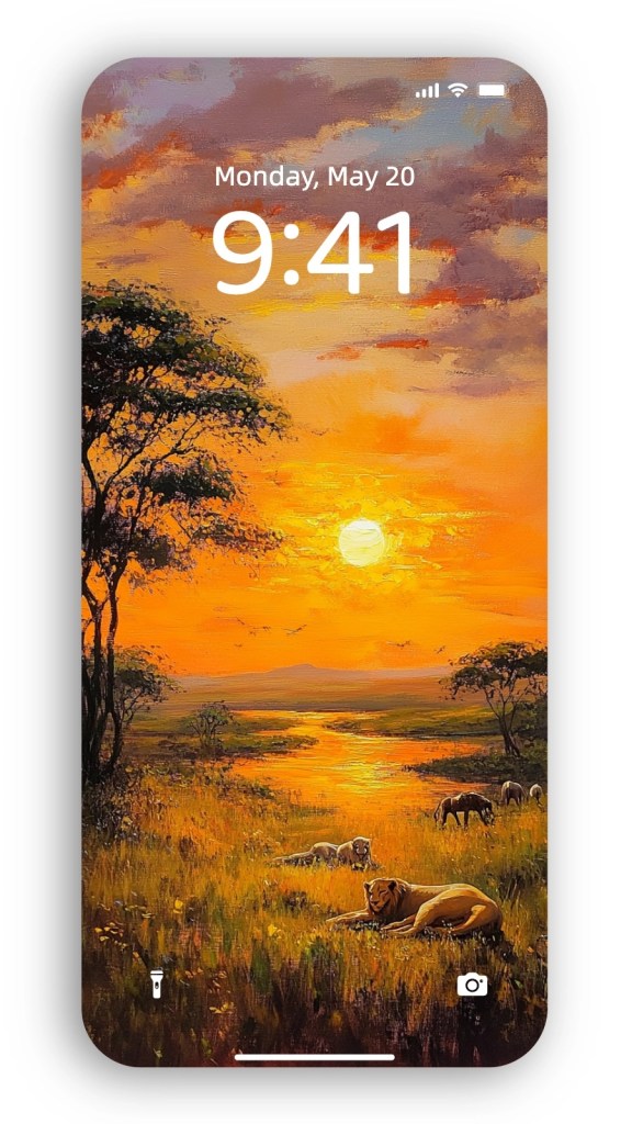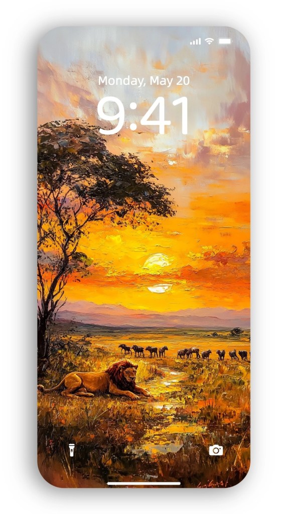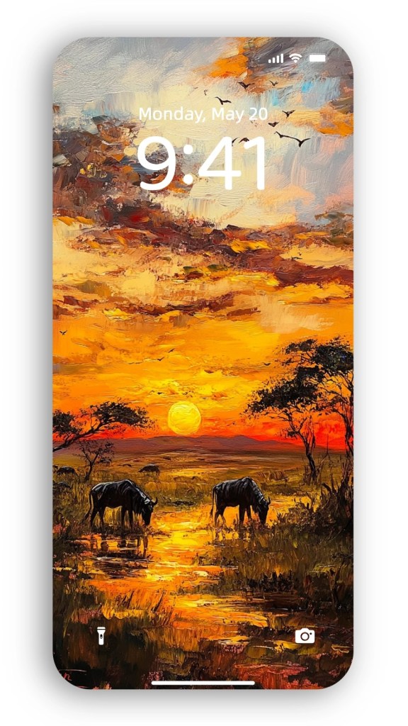 Animal sunset paintings are timeless reminders of the harmony between creatures and their environment, set against nature’s most dramatic light show. Imagine bringing this serene energy into your space with AI-generated wallpapers that recreate these awe-inspiring scenes.