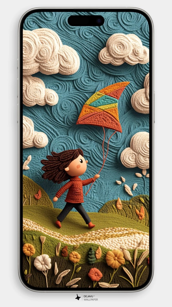 Picture this: a girl with a yarn-woven backpack strolls across a grassy meadow with her loyal dog. The knitted mountains and skies around her exude warmth and serenity. Or imagine a child running with a colorful kite, each thread stitched with dreams of freedom and endless adventures. These handcrafted stories tug at your heartstrings—literally!