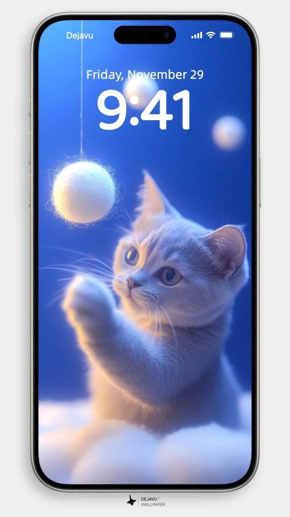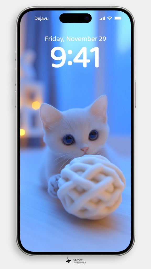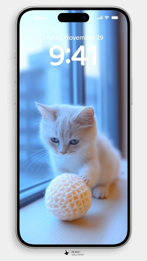 Imagine a playful, cute cat tangled up in a bundle of colorful yarn balls—it’s the perfect scene to brighten up your phone wallpaper! This little furball, with wide, curious eyes, is caught mid-pounce, as if ready to chase the next rolling ball of yarn. The vibrant colors of the yarn contrast beautifully with the soft fur of the cat, creating a delightful and cheerful image. Whether you’re a cat lover or just someone who enjoys adorable and lively designs, this wallpaper will add a touch of fun and warmth to your screen. Perfect for bringing smiles every time you unlock your phone!