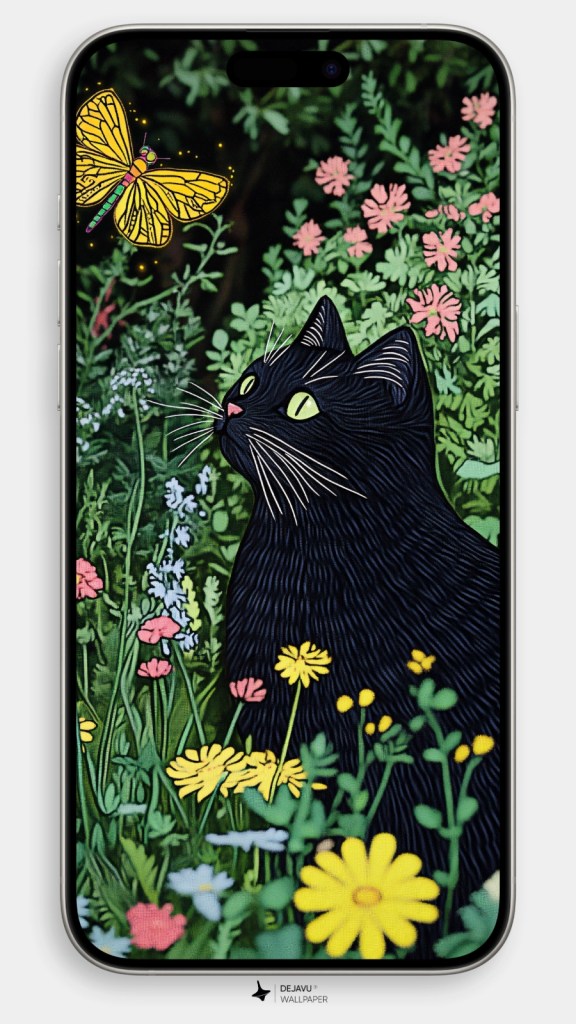 Whether you’re a cat lover or just someone who appreciates a chic aesthetic, this wallpaper is sure to brighten your screen and your day. The minimalist style keeps it elegant, while the whimsical cat adds a dash of fun. Get ready to showcase your love for felines in the most stylish way possible—because your phone deserves a little meowgic too!