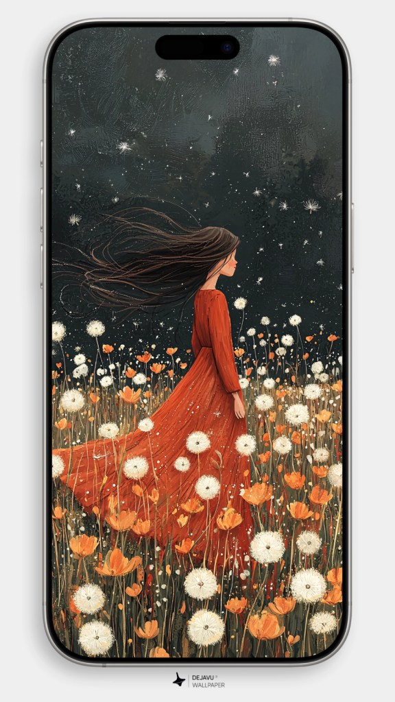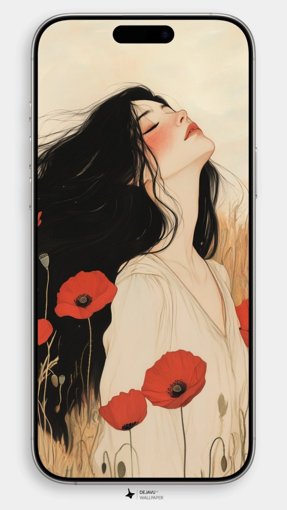 - Poppies – Often seen in vintage or mysterious illustrations, poppies symbolize dreams, nostalgia, and sometimes sorrow or sacrifice. Their fiery red petals make the girl’s presence even more striking.
