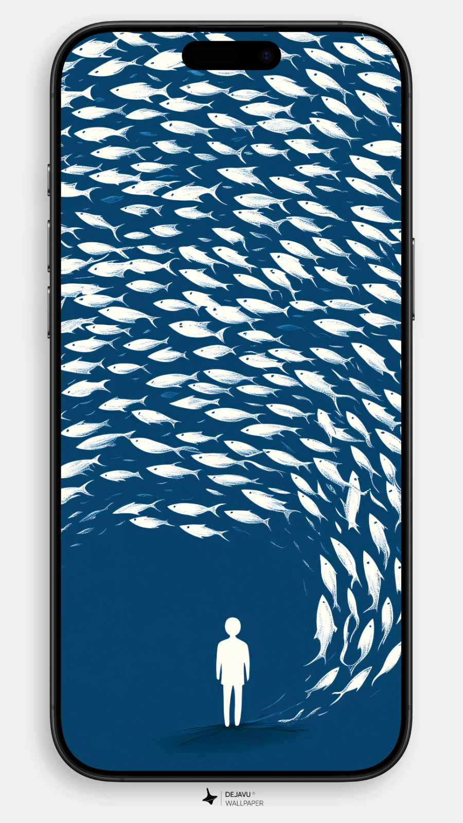 Dive deep into the surreal with The Fishy Philosophy of Dream Oceans, a collection of seamless minimal phone wallpapers in stunning 8K — tailor-made for iPhone and Android dreamers. These aren’t your average fishy scenes. Imagine sleek aquatic shapes drifting through endless blues, merging into a sea of collective consciousness. It’s minimalism meets mystery — where each tiny fish feels like a floating thought, and the ocean becomes a calm, stylish mindscape. Inspired by the growing trend of “blue mind” wellness and the internet’s obsession with lo-fi calm, this wallpaper set turns your screen into a tranquil portal to an underwater dream. Clean lines, soft motion, and a subtle sense of unity make it more than just a background — it’s an ambient escape. Whether you’re zoning out between texts or deep in digital reflection, let these dreamy patterns remind you: even in a sea of thoughts, there’s beauty in flowing together. Now breathe in, tap download, and swim into the stillness.