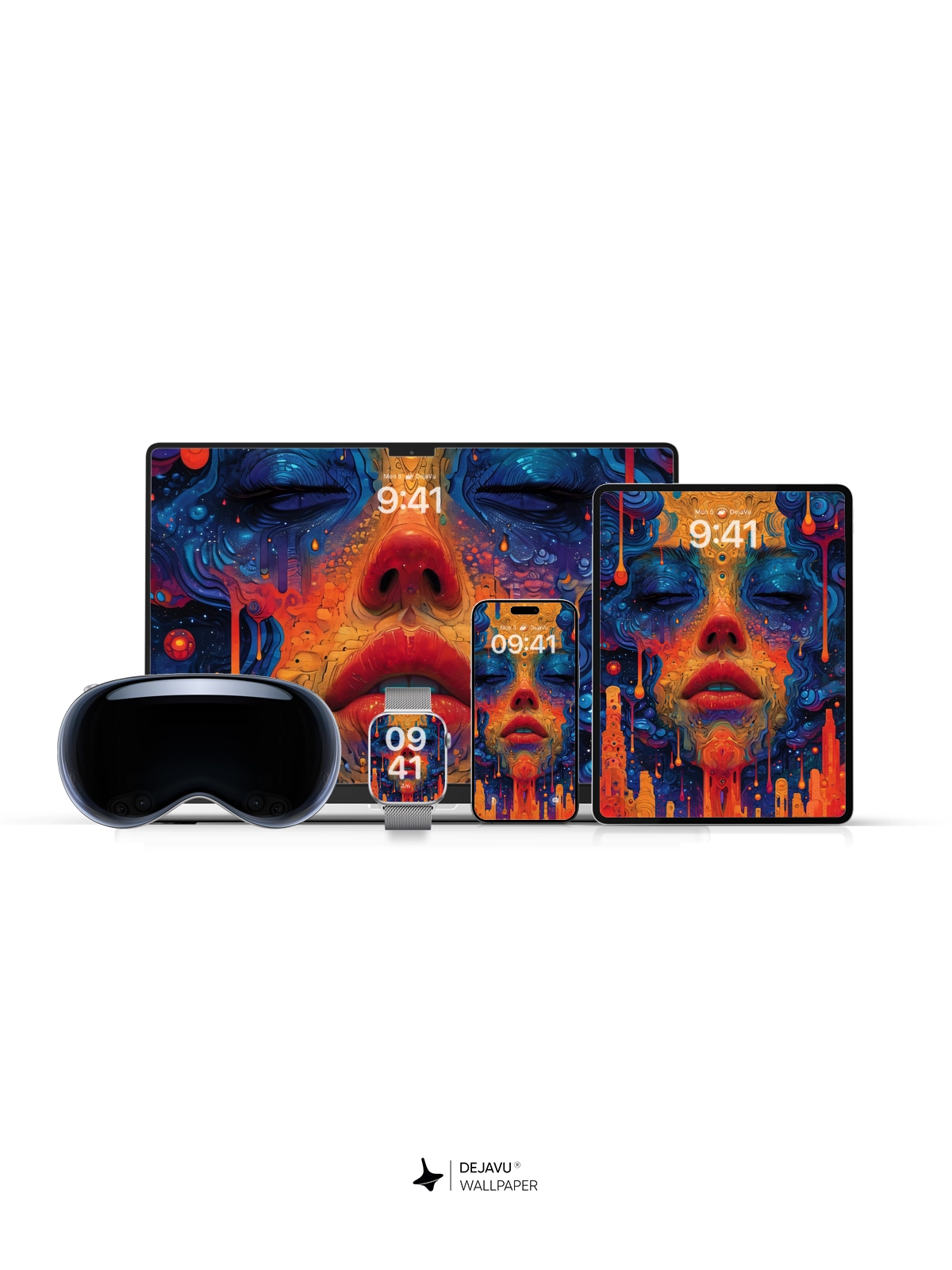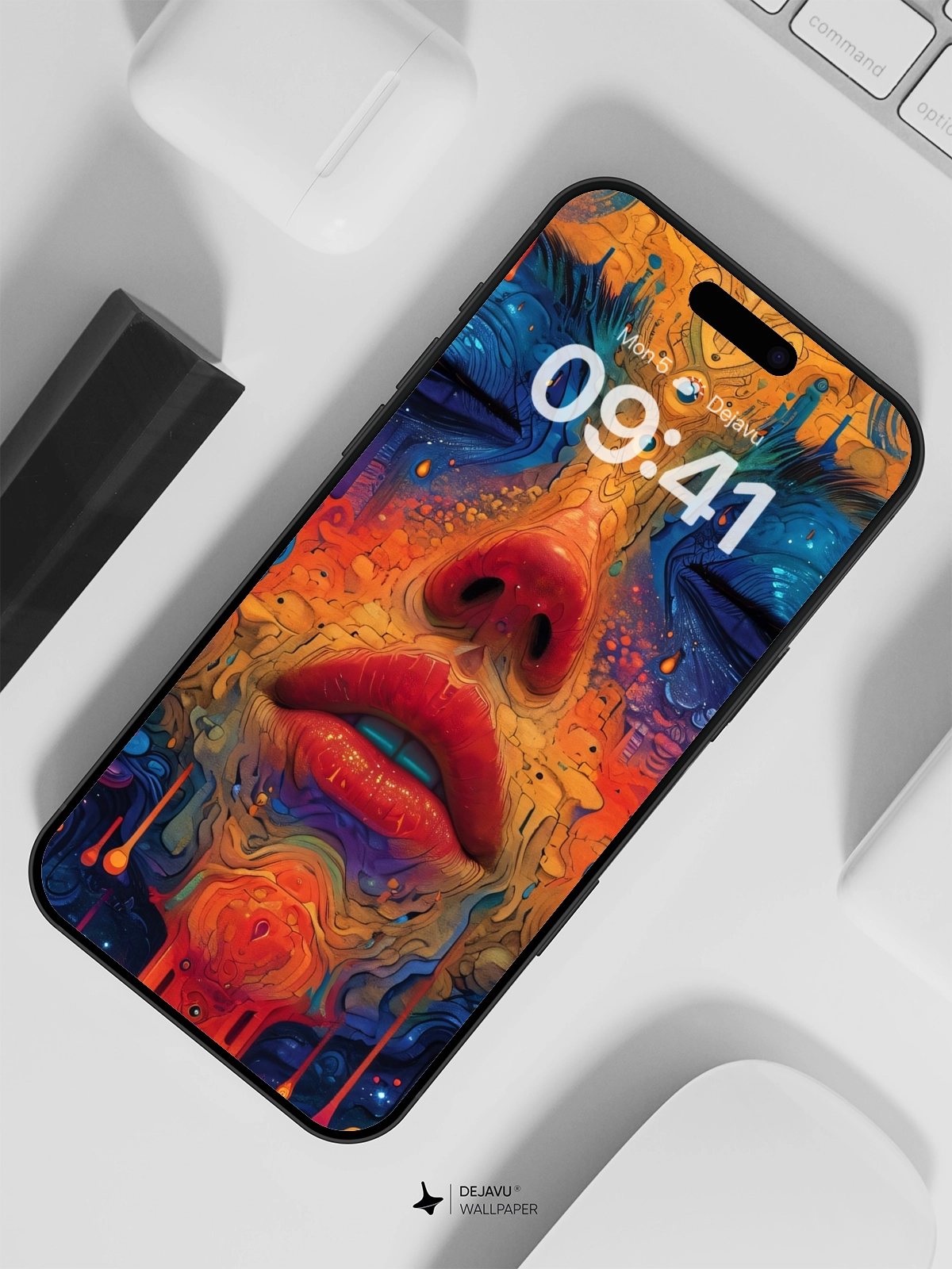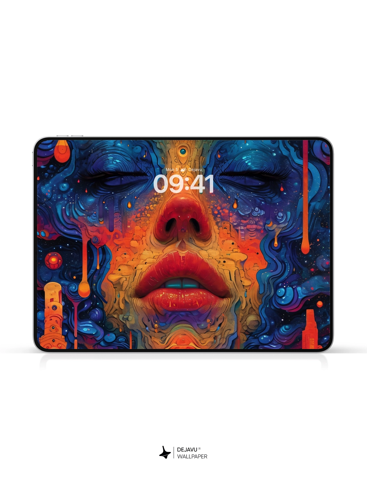 Dive into a world of vibrant colors and complex patterns with this 8K abstract wallpaper. The design combines elements of cosmic imagery with intricate shapes, creating a visually stunning piece that is both captivating and thought-provoking. Ideal for tech devices like iPhones, Androids, and tablets, this wallpaper adds a touch of artistic flair to your screens.