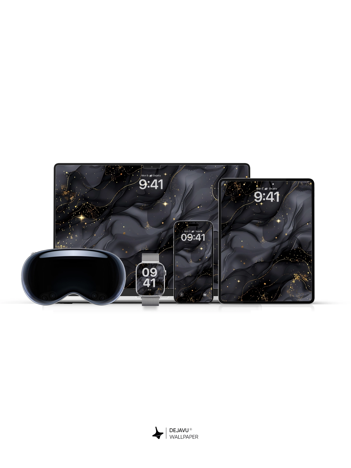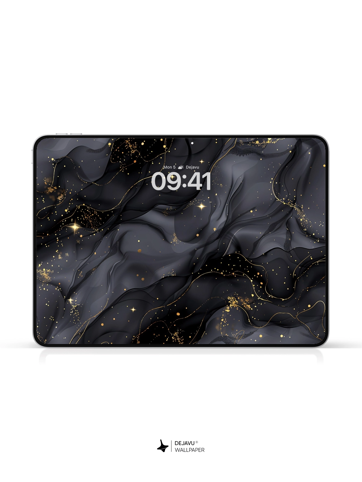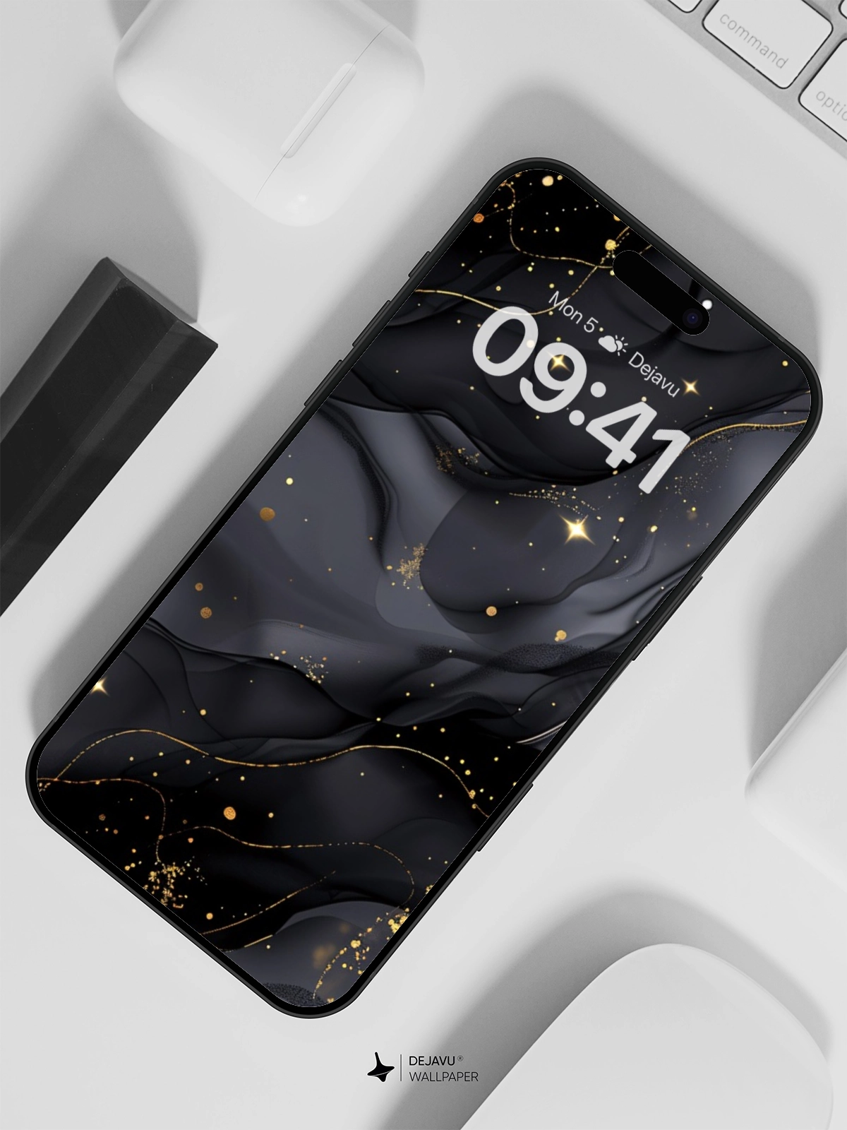 Experience the elegance of this 8K abstract black and gold marble wallpaper. The design combines smooth, flowing lines with sparkling gold accents, creating a luxurious and minimal aesthetic. Ideal for enhancing the look of your iPhone, Android, or tablet screens.