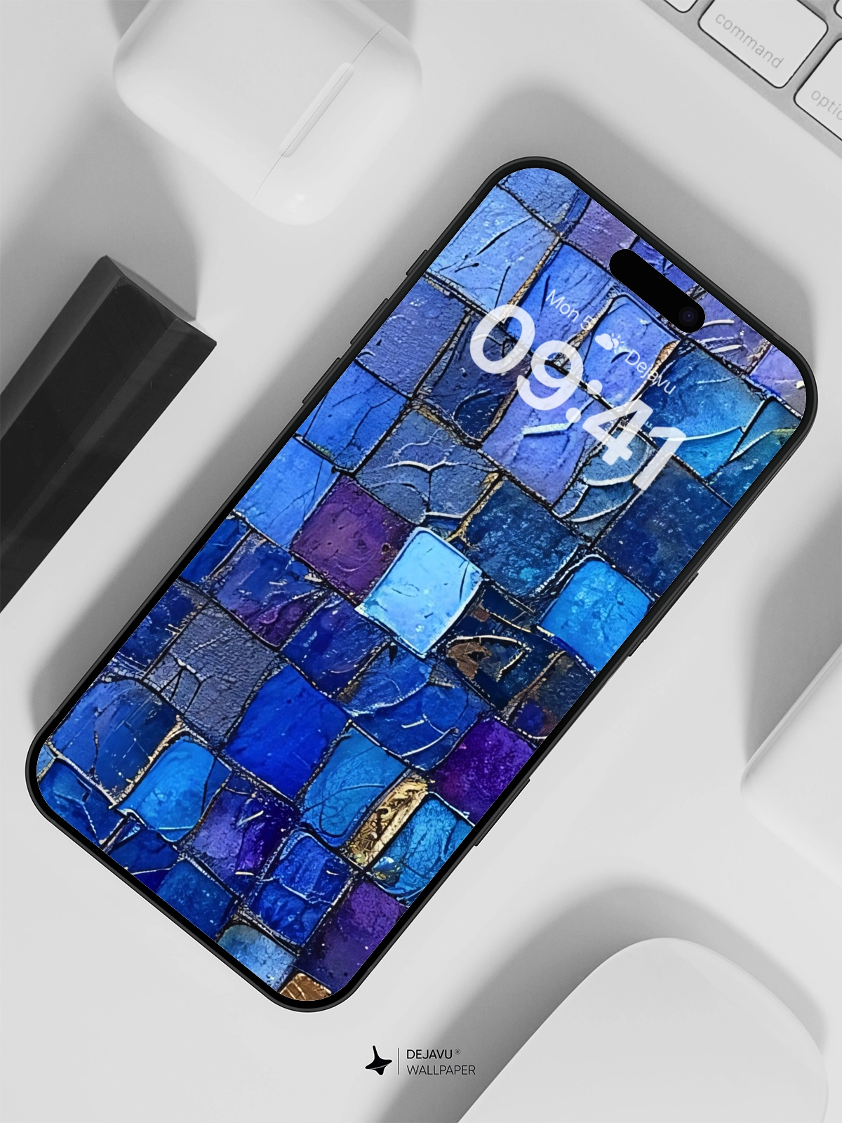 Experience the beauty of this 8K abstract mosaic wallpaper, featuring a mesmerizing blend of blue and gold tones. The unique design evokes a sense of calm and sophistication, making it ideal for both iPhone and Android devices. Perfect for tech enthusiasts and minimalists who appreciate high-quality aesthetics.