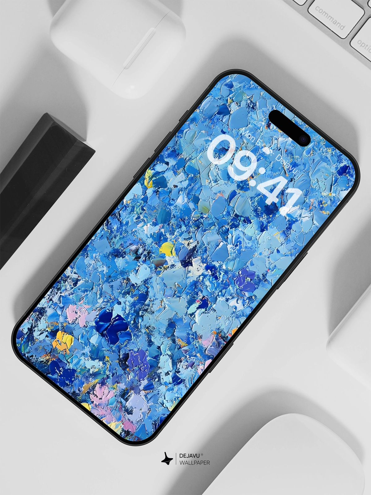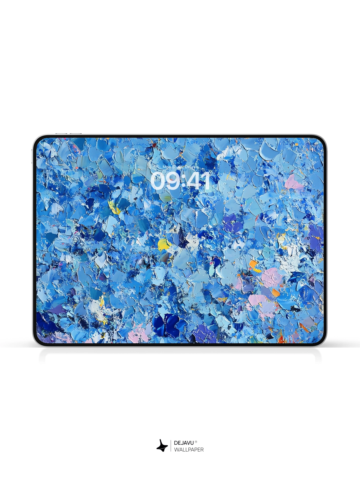 Experience the beauty of this 8K abstract painting wallpaper, featuring a rich tapestry of blue tones with a textured, painterly effect. This high-resolution image is perfect for enhancing the screens of your iPhone, Android, or tablet, bringing a touch of artistic elegance to your tech devices.