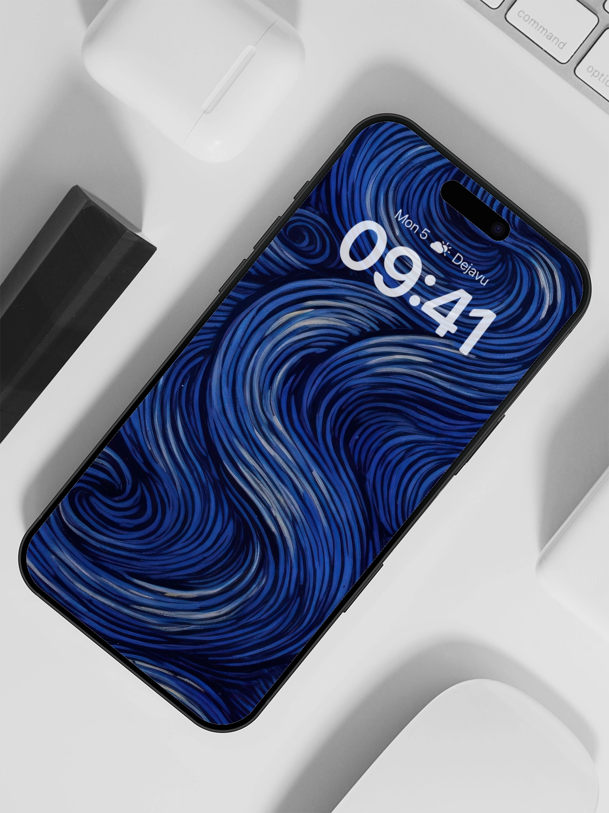 Dive into the serene and captivating world of this 8K abstract blue waves wallpaper. The intricate swirls and flowing lines create a soothing and minimalist aesthetic, ideal for enhancing the look of your iPhone or Android device. This wallpaper is not just visually appealing but also evokes a sense of calm and tranquility.