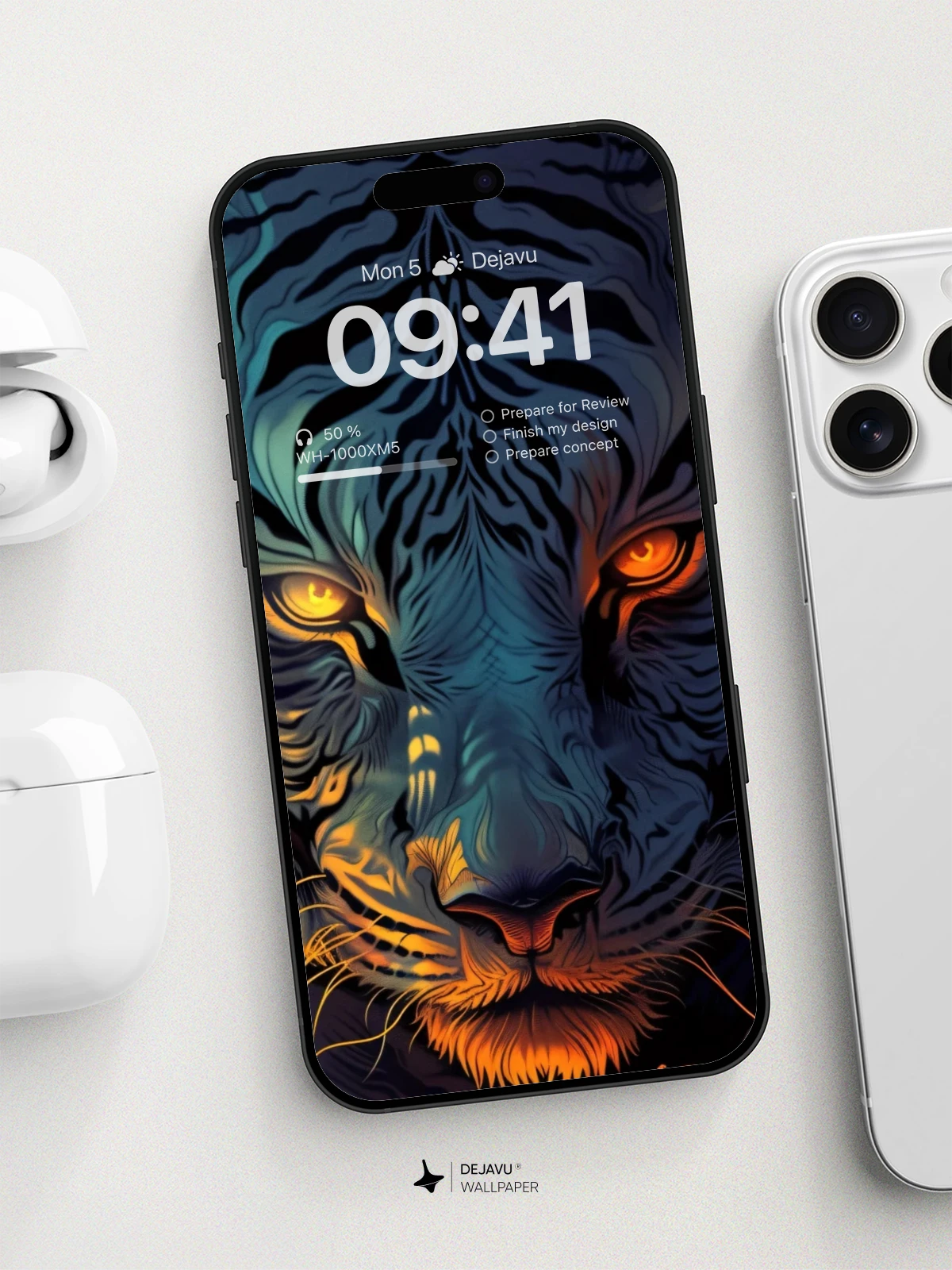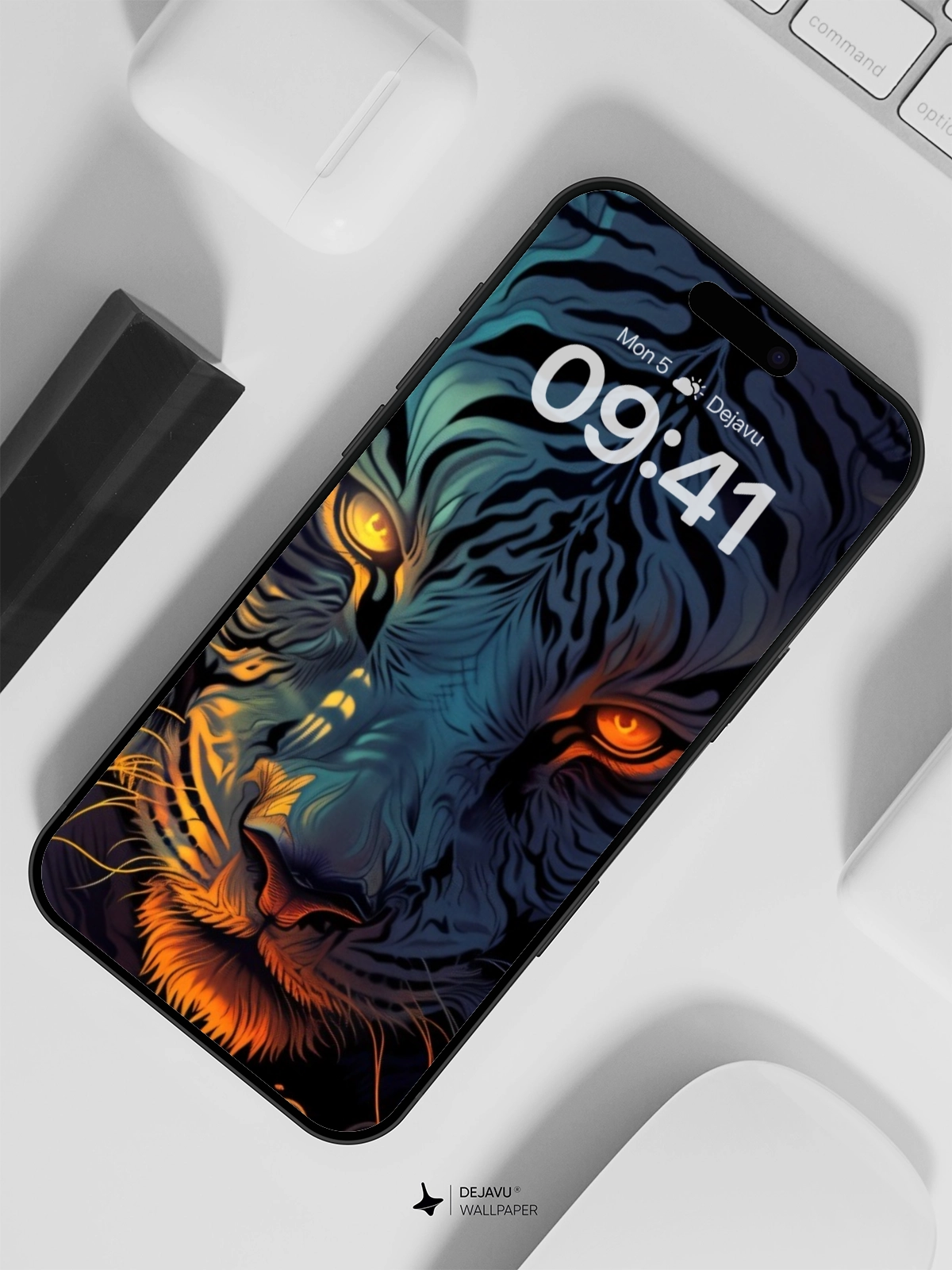 Experience the mesmerizing blend of technology and nature with this 8K abstract tiger illustration. The glowing eyes and intricate details create a captivating visual that’s both modern and artistic. Perfect for enhancing your iPhone or Android device with a touch of sophistication and mystery.