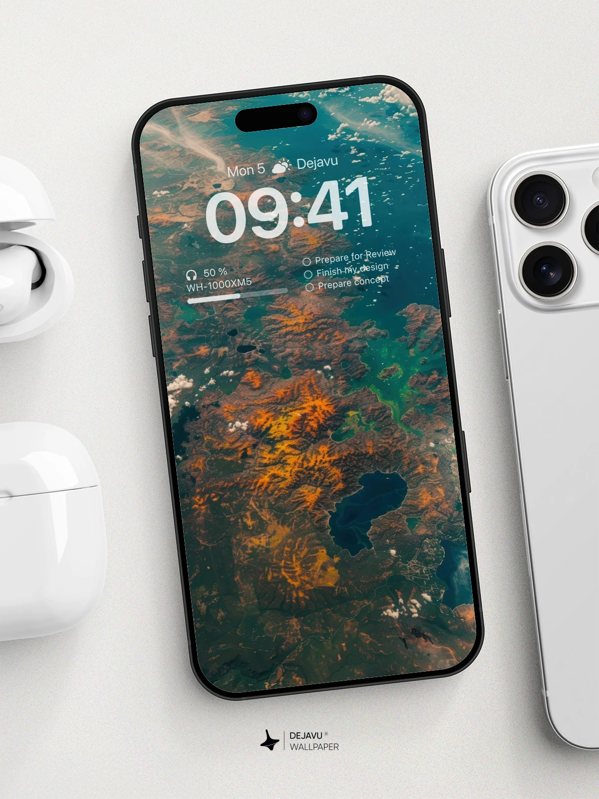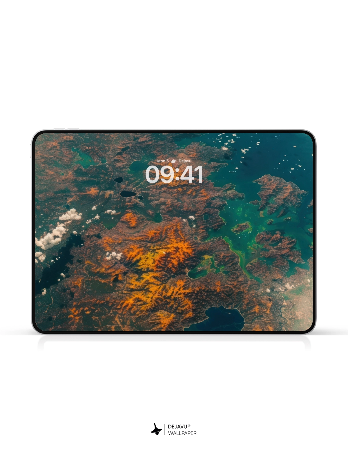 This 8K wallpaper offers a breathtaking aerial view of a diverse landscape, featuring vibrant colors and intricate natural patterns. The minimalist design captures the beauty of the earth from above, making it an ideal choice for iPhone, Android, and tablet users looking to enhance their device’s aesthetic.