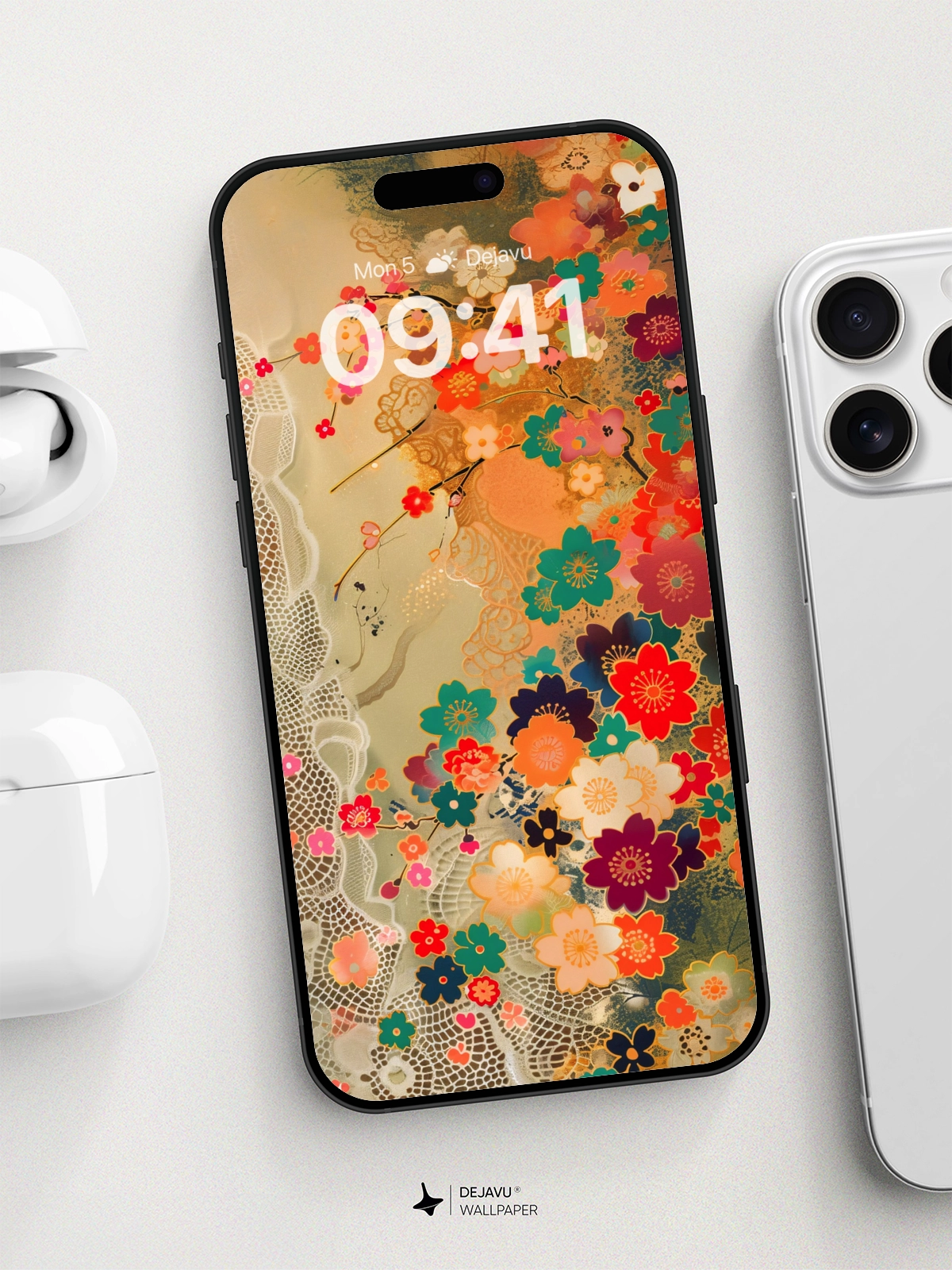 This 8K aesthetic wallpaper showcases a beautiful blend of vibrant floral patterns and intricate lace designs. The rich colors and detailed textures create a visually captivating experience. Ideal for enhancing the screens of iPhone, Android, and tablets, this wallpaper brings a touch of elegance and beauty to any device.