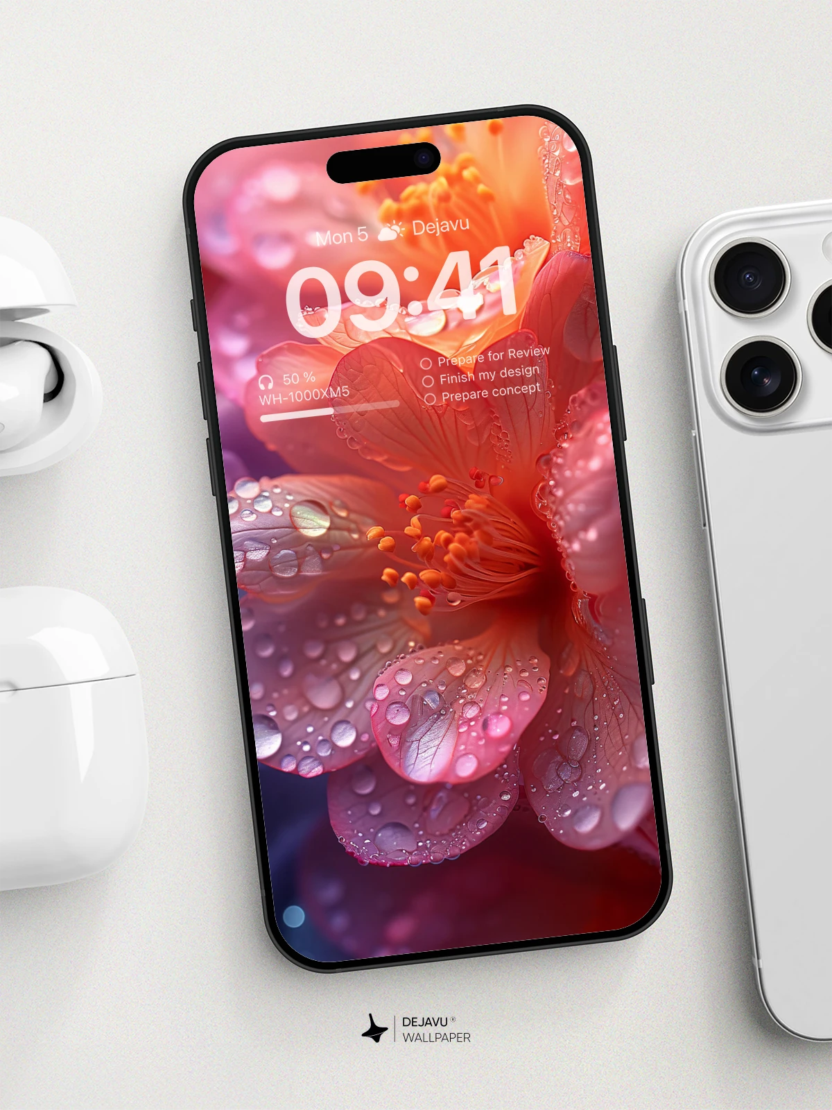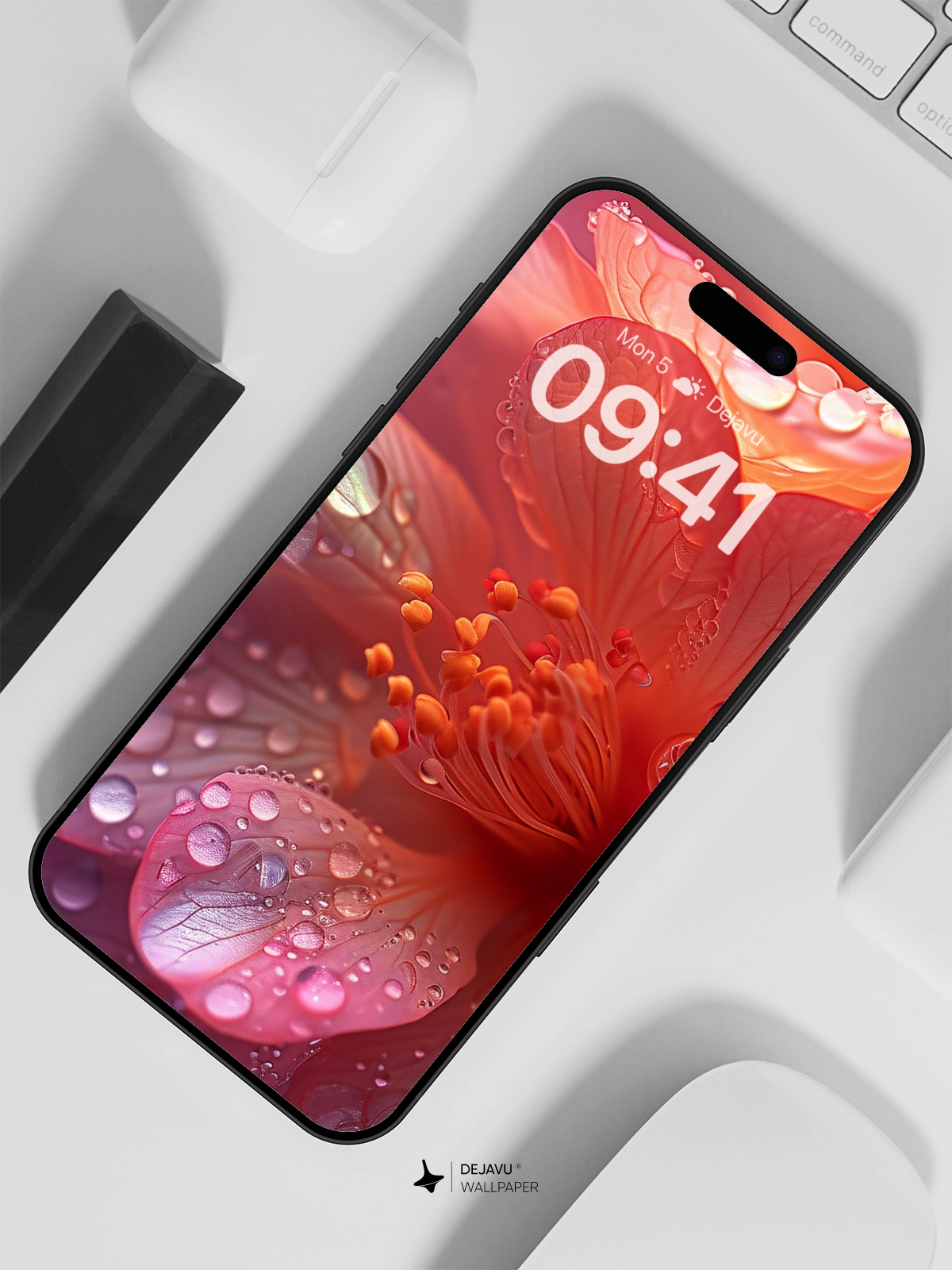 This 8K aesthetic floral wallpaper captures the intricate beauty of a flower adorned with water droplets. The vibrant colors and detailed texture make it a perfect choice for enhancing the screens of your iPhone or Android device. The image evokes a sense of tranquility and natural beauty, making it an ideal background for any tech gadget.