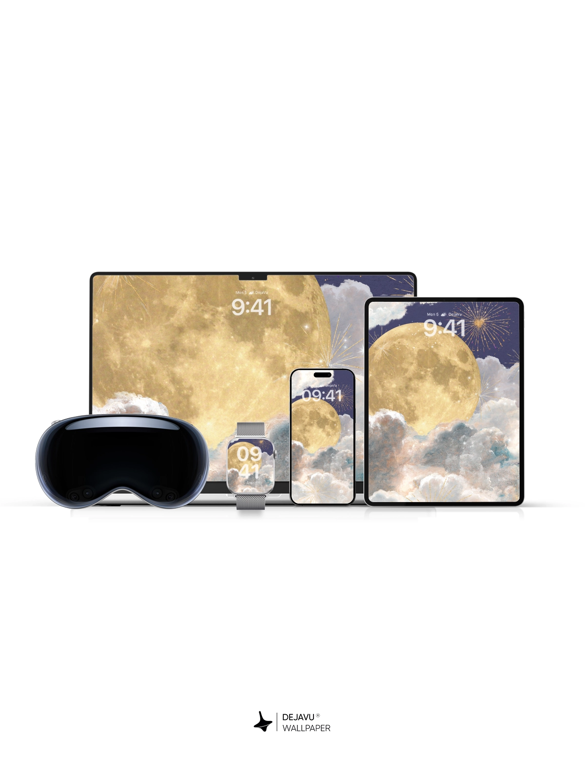 Experience the magic of a full moon amidst soft, dreamy clouds with bursts of fireworks in this 8K aesthetic wallpaper. Designed to evoke a sense of wonder and tranquility, it’s perfect for enhancing your iPhone or Android device with its high-resolution beauty.