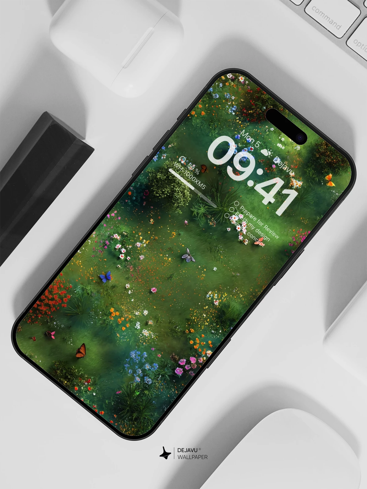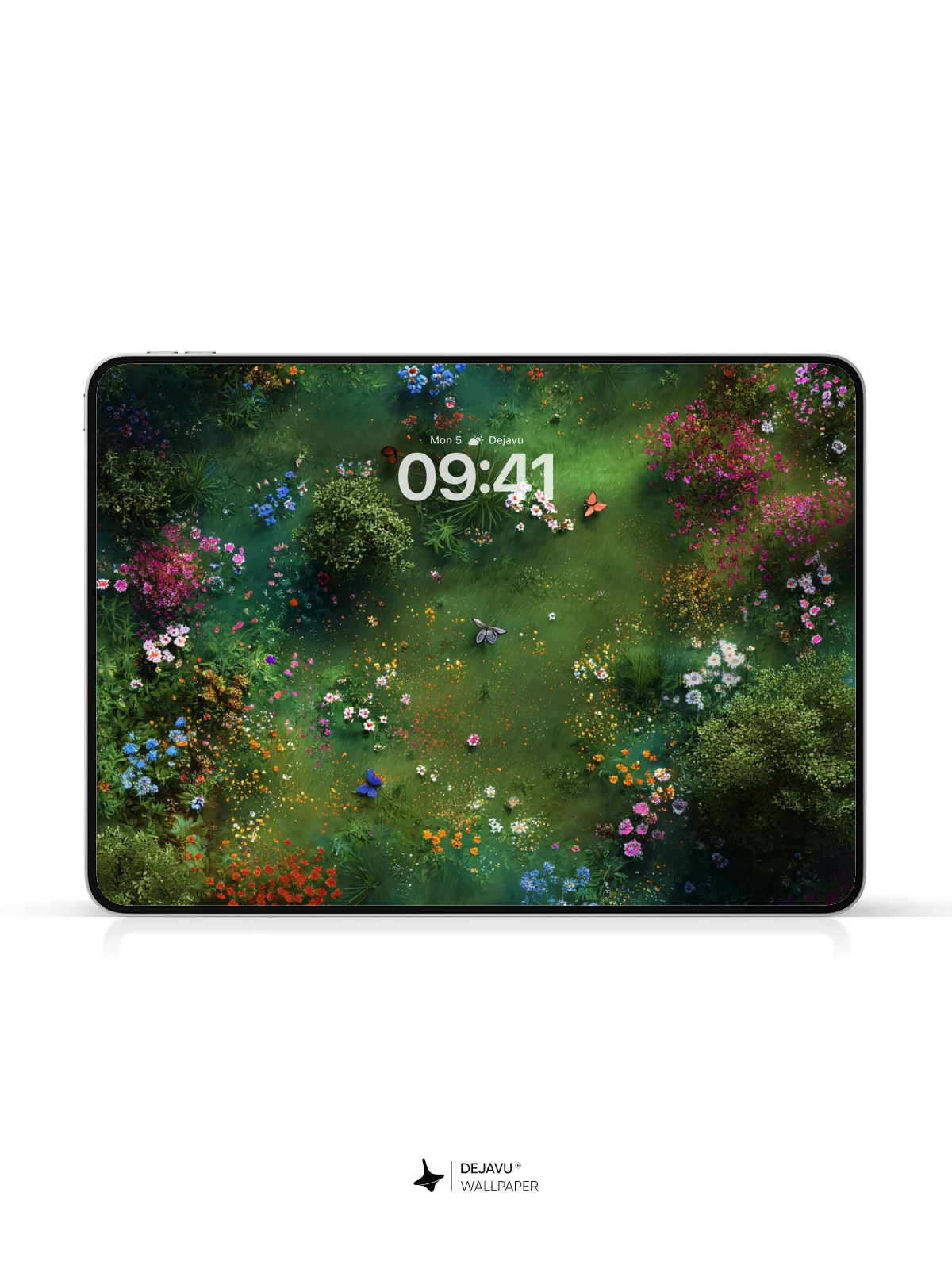 Immerse yourself in the beauty of nature with this 8K aesthetic wallpaper. The image captures a lush garden teeming with colorful flowers and fluttering butterflies, creating a serene and vibrant atmosphere. This wallpaper is ideal for enhancing the screens of your iPhone, Android, or tablet, bringing a touch of natural beauty to your daily life.