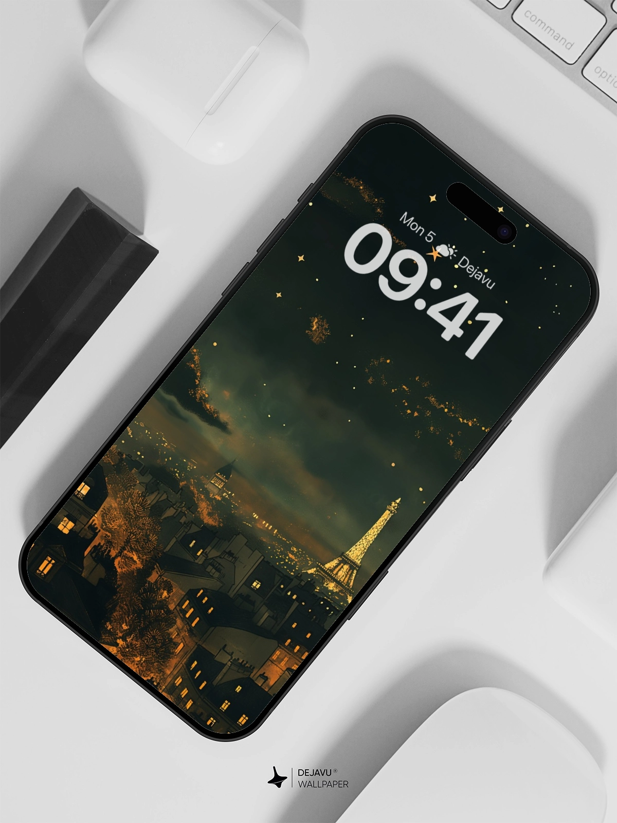 This 8K aesthetic wallpaper captures the magical night sky over Paris, featuring the iconic Eiffel Tower illuminated under a crescent moon and twinkling stars. The soft gradient of colors and detailed illustration make it perfect for enhancing your iPhone or Android device’s screen.