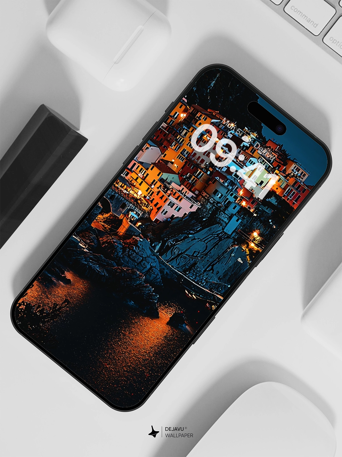 Immerse yourself in the tranquil beauty of this 8K wallpaper featuring a coastal town illuminated by warm, vibrant lights against the backdrop of a calm sea. The picturesque scene captures the essence of serenity and charm, making it ideal for enhancing your iPhone or Android device’s screen with a touch of elegance and tranquility.