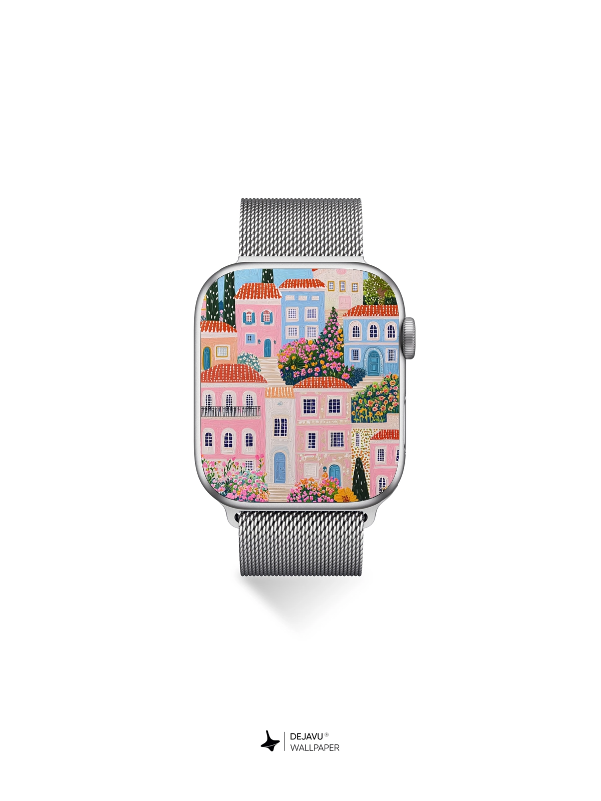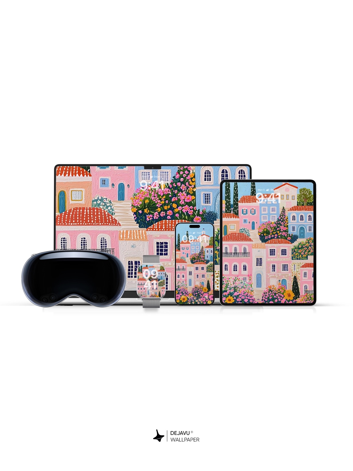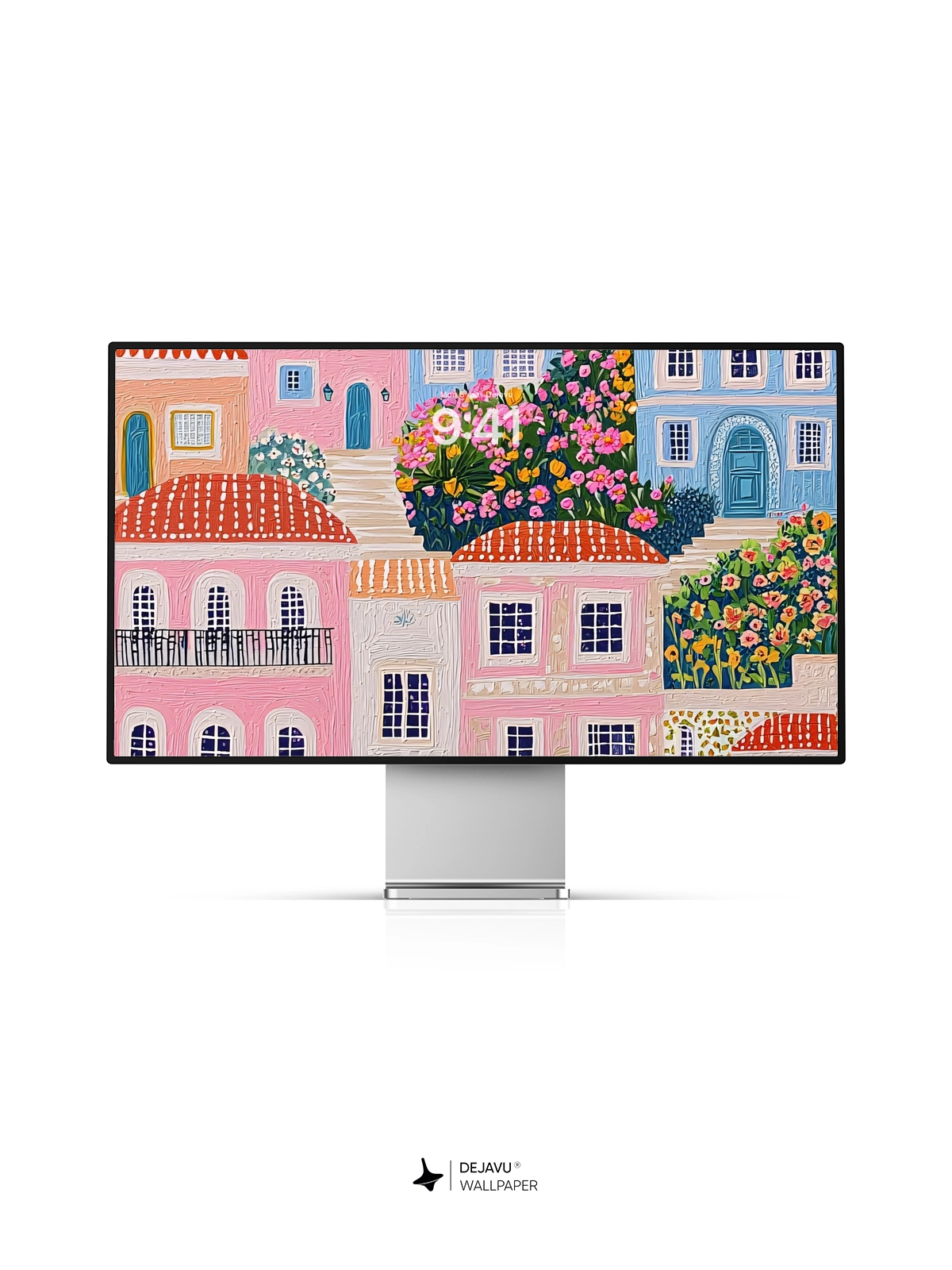 This 8K aesthetic painting captures the charm of a quaint village with pastel-colored buildings and blooming gardens. The detailed illustration evokes a sense of tranquility and beauty, making it an ideal wallpaper for iPhone, Android, and tablets. The soft gradient colors and intricate design create a visually pleasing and calming atmosphere.