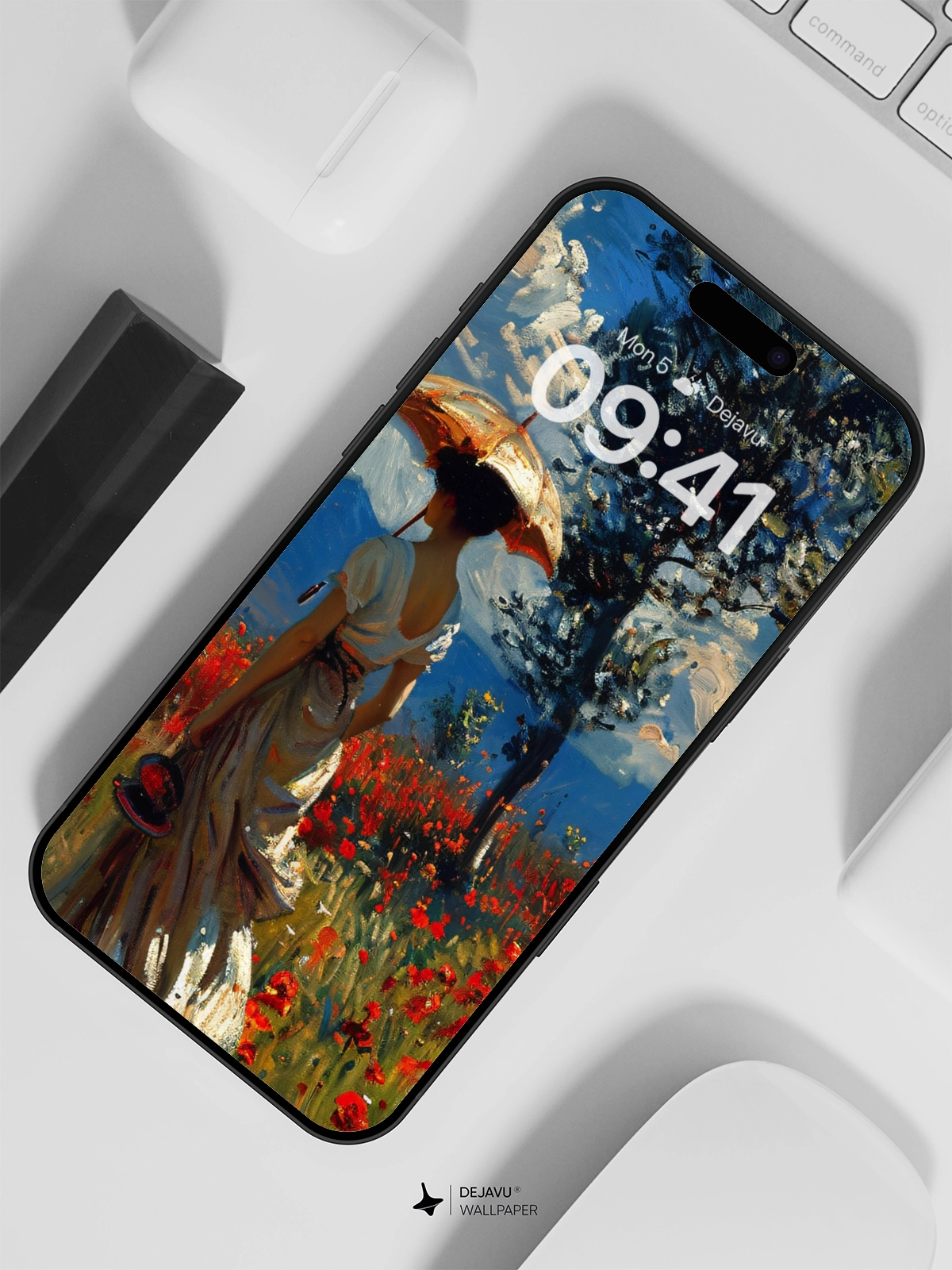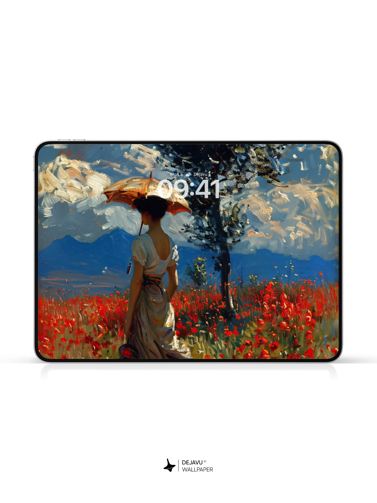 This 8K aesthetic painting captures the serene beauty of a lady walking through a field of red poppies under a bright blue sky. The detailed brushstrokes and vivid colors make it an ideal wallpaper for both iPhone and Android devices, enhancing your screen with a touch of classic art.