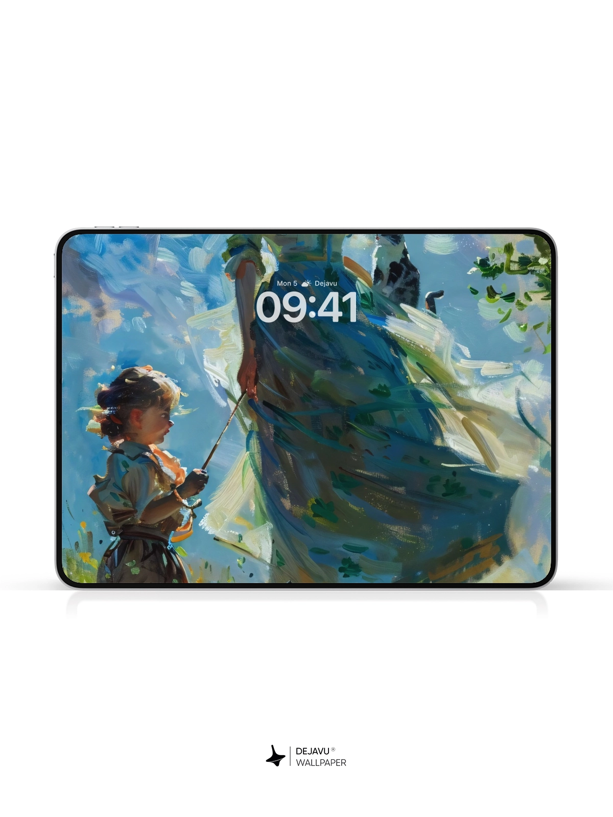 This 8K aesthetic painting captures the serene moment of a mother and child in a lush garden. The vibrant colors and detailed brushstrokes evoke a sense of tranquility and warmth, making it an ideal wallpaper for iPhone, Android, and tablets. The scene is filled with natural beauty and emotional depth, perfect for those who appreciate art and nature.