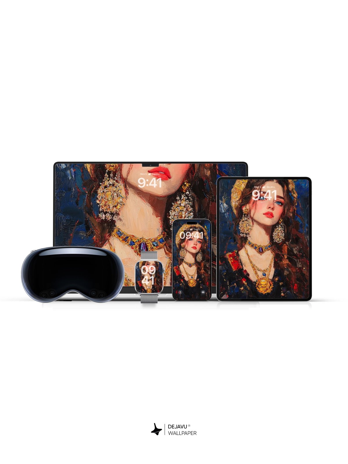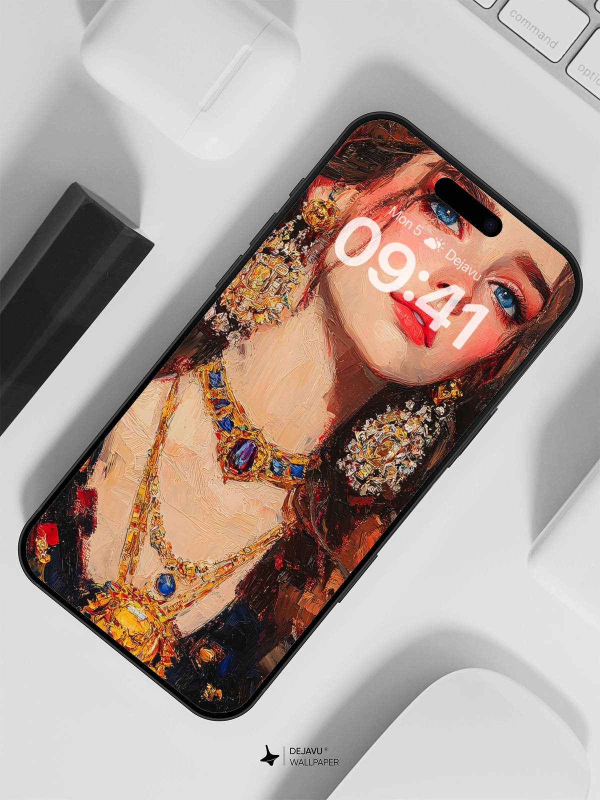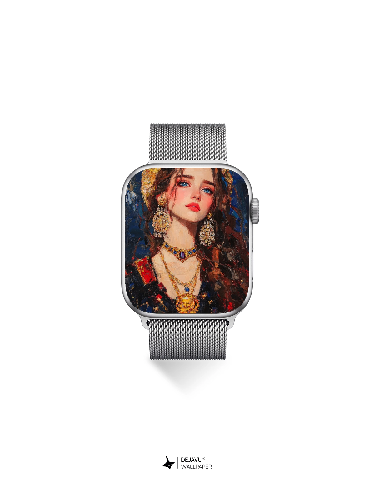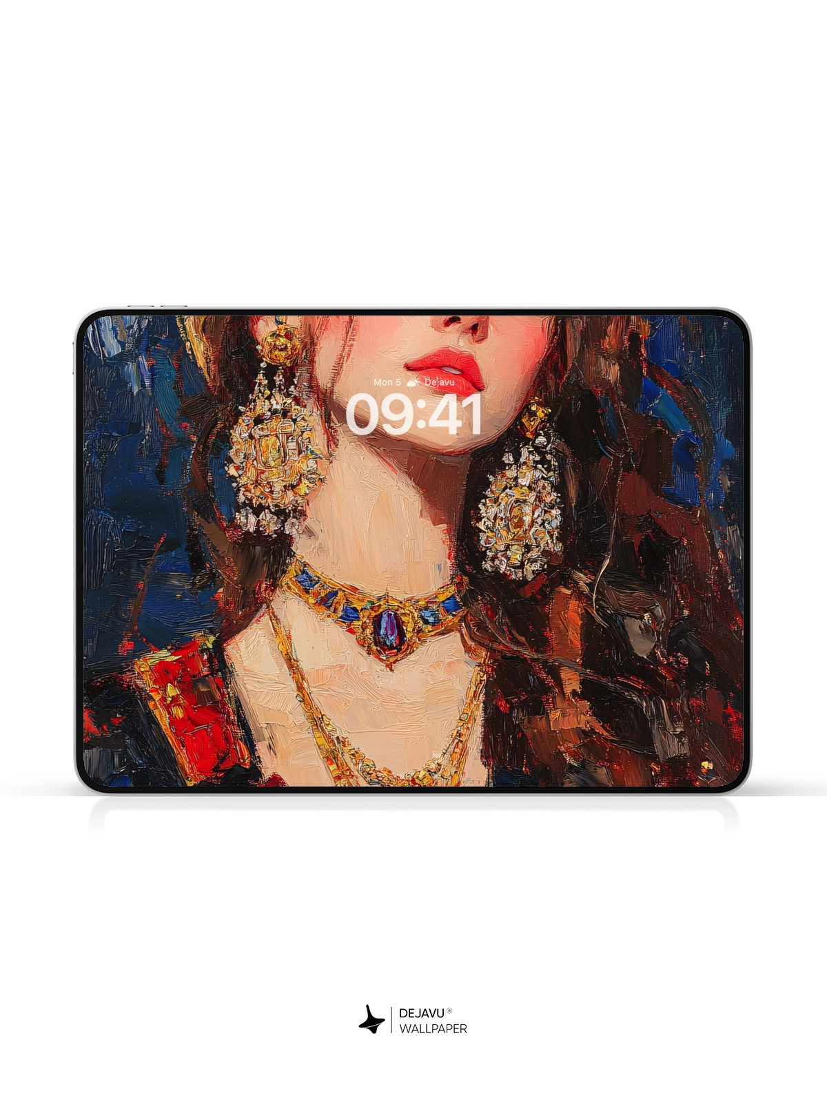 This 8K aesthetic painting showcases a regal figure with intricate jewelry, capturing a blend of elegance and opulence. The rich colors and detailed brushstrokes make it an ideal wallpaper for iPhone, Android, and tablets, enhancing any device’s screen with a touch of sophistication.