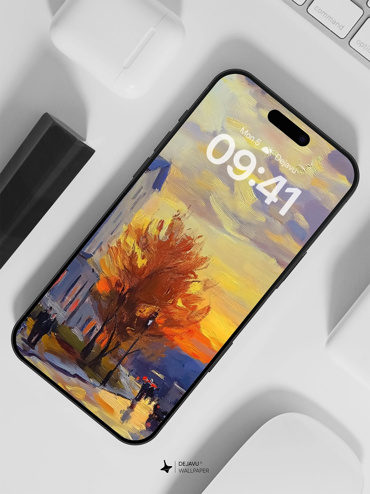 This 8K aesthetic painting captures the essence of a serene sunset street scene with its rich, warm colors and intricate brushstrokes. The detailed artwork evokes a sense of calm and nostalgia, making it an ideal wallpaper for iPhone, Android, and tablets. The blend of light and shadow creates a captivating visual experience.