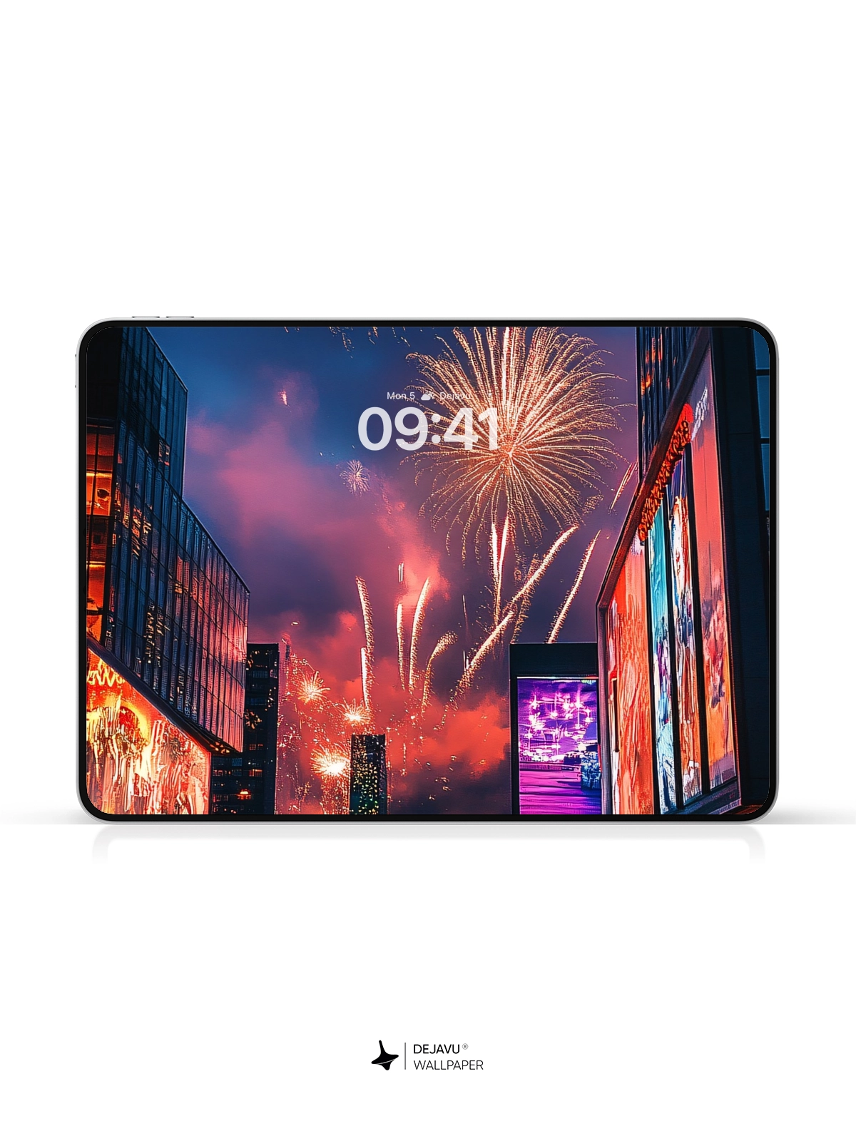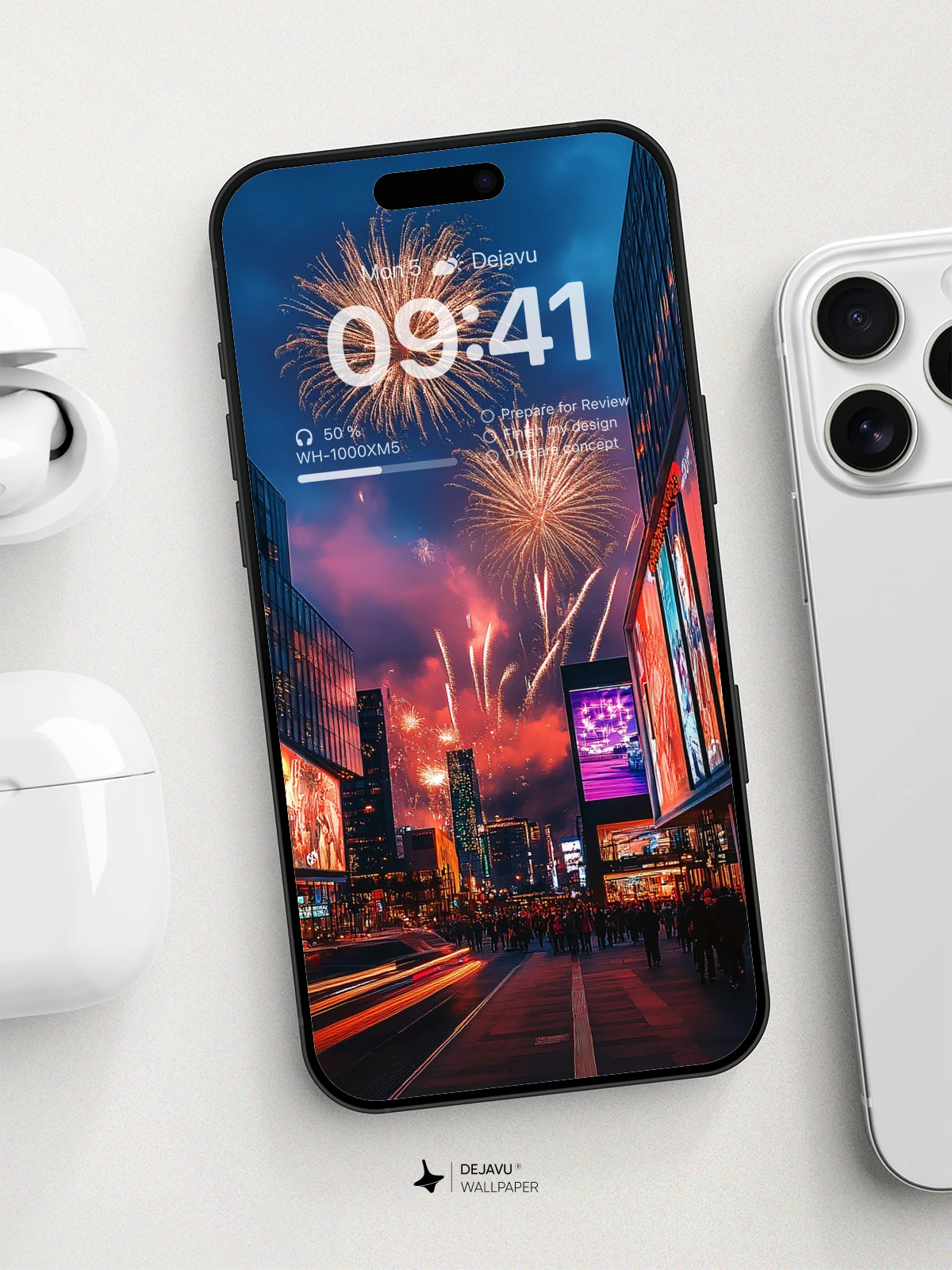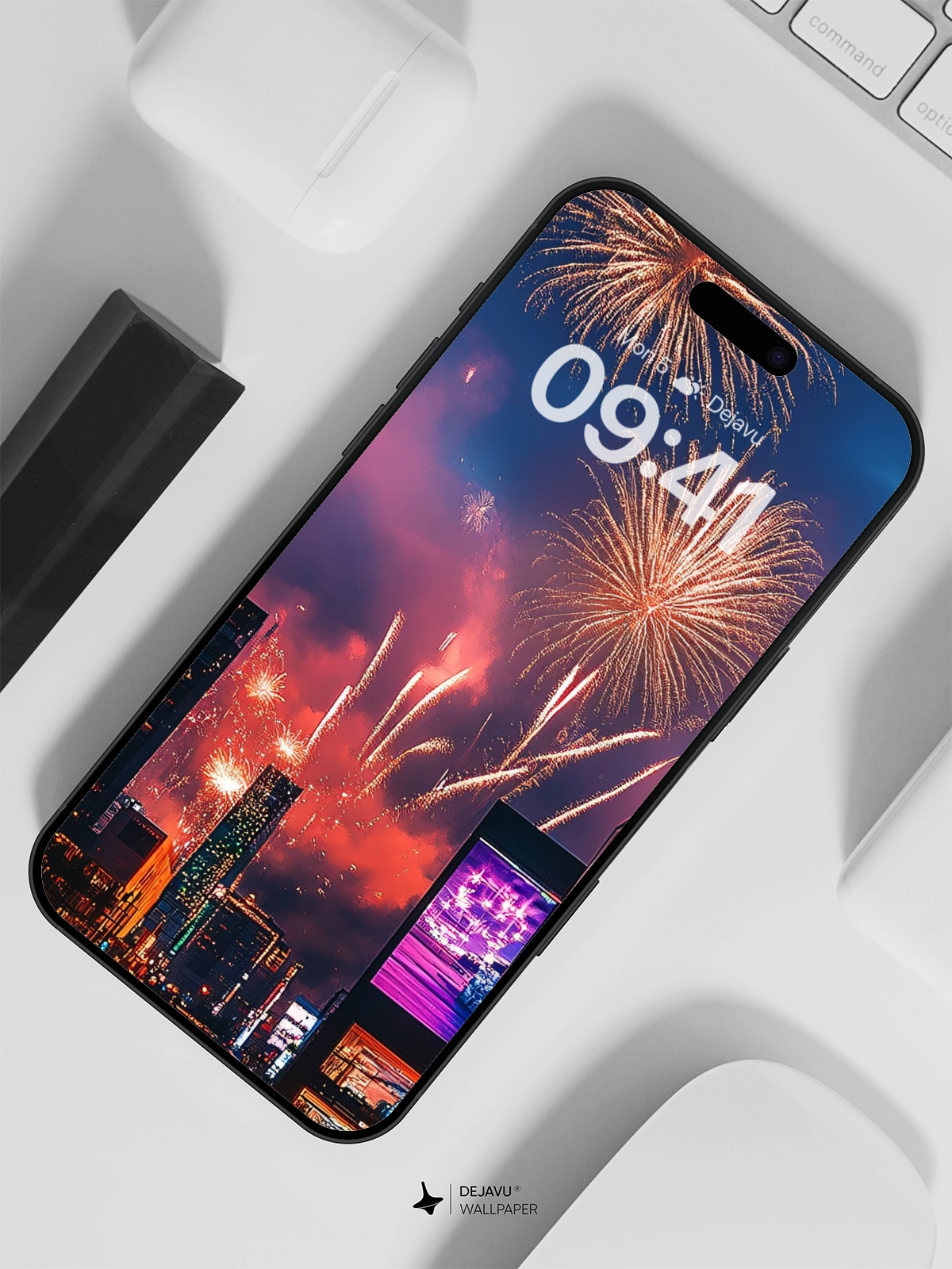 Experience the mesmerizing blend of urban life and festive fireworks in this 8K wallpaper. The image captures the essence of a bustling city at night with stunning fireworks lighting up the sky. Perfect for enhancing your iPhone or Android device with a touch of elegance and excitement.