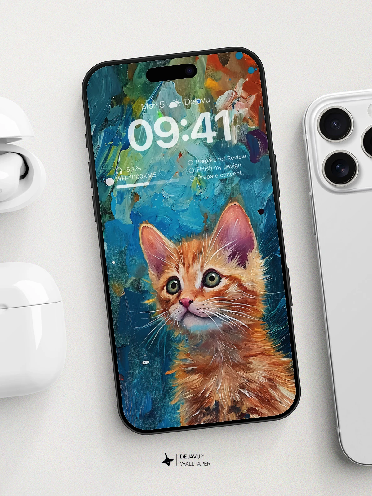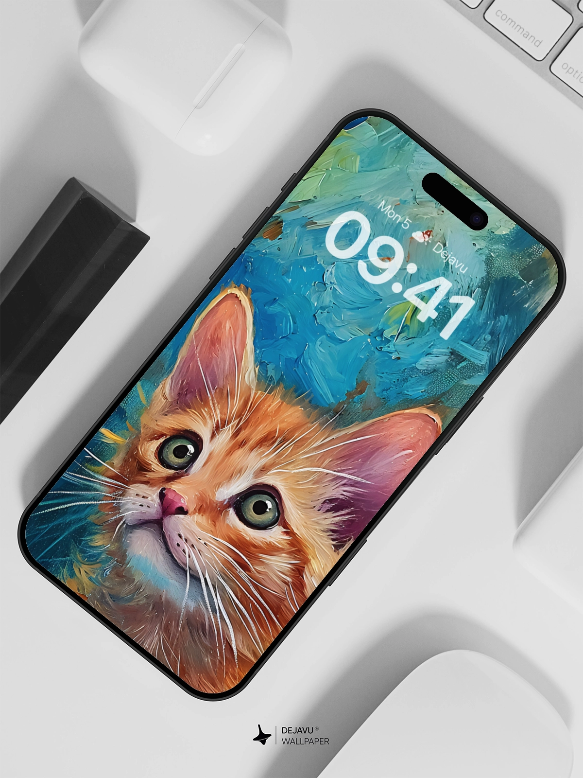Discover this charming 8K wallpaper featuring a cute cat painting with vibrant colors and a minimalist aesthetic. Perfect for enhancing the look of your iPhone or Android device. The detailed brushstrokes and expressive eyes of the cat evoke a sense of warmth and joy, making it an ideal choice for anyone who loves art and animals.