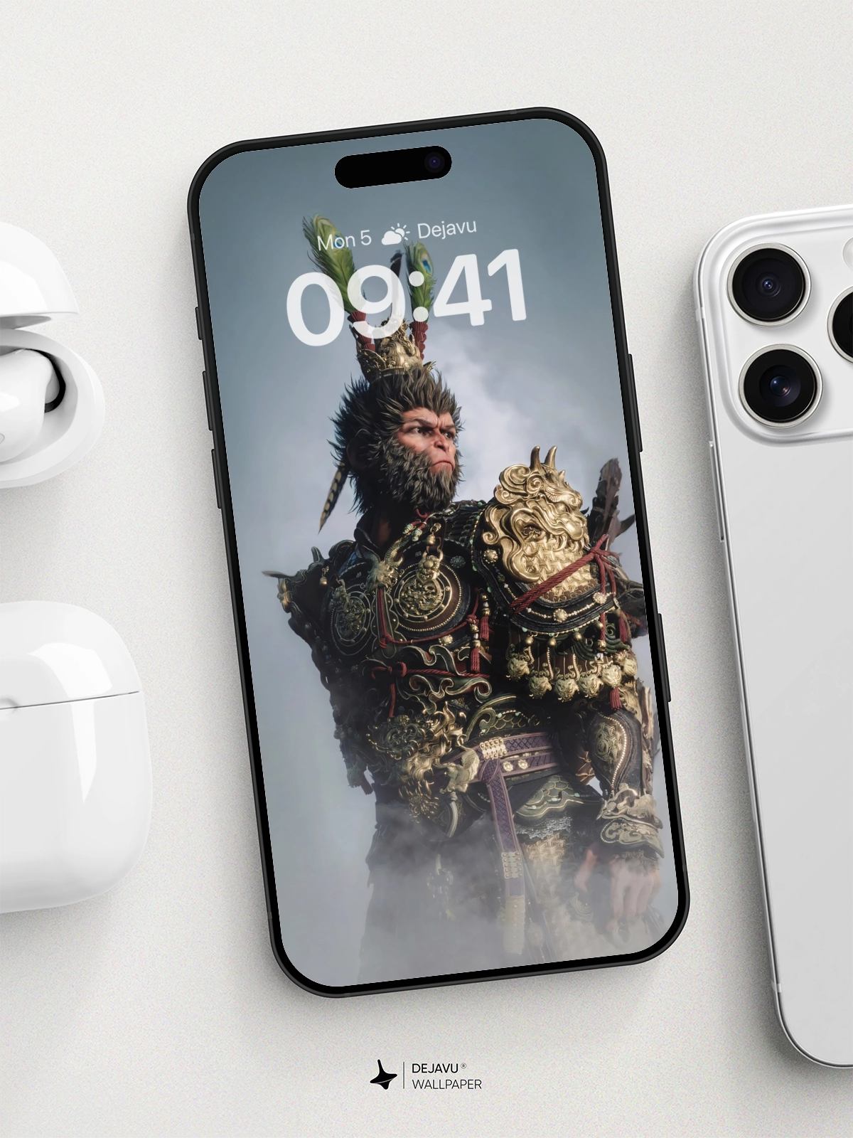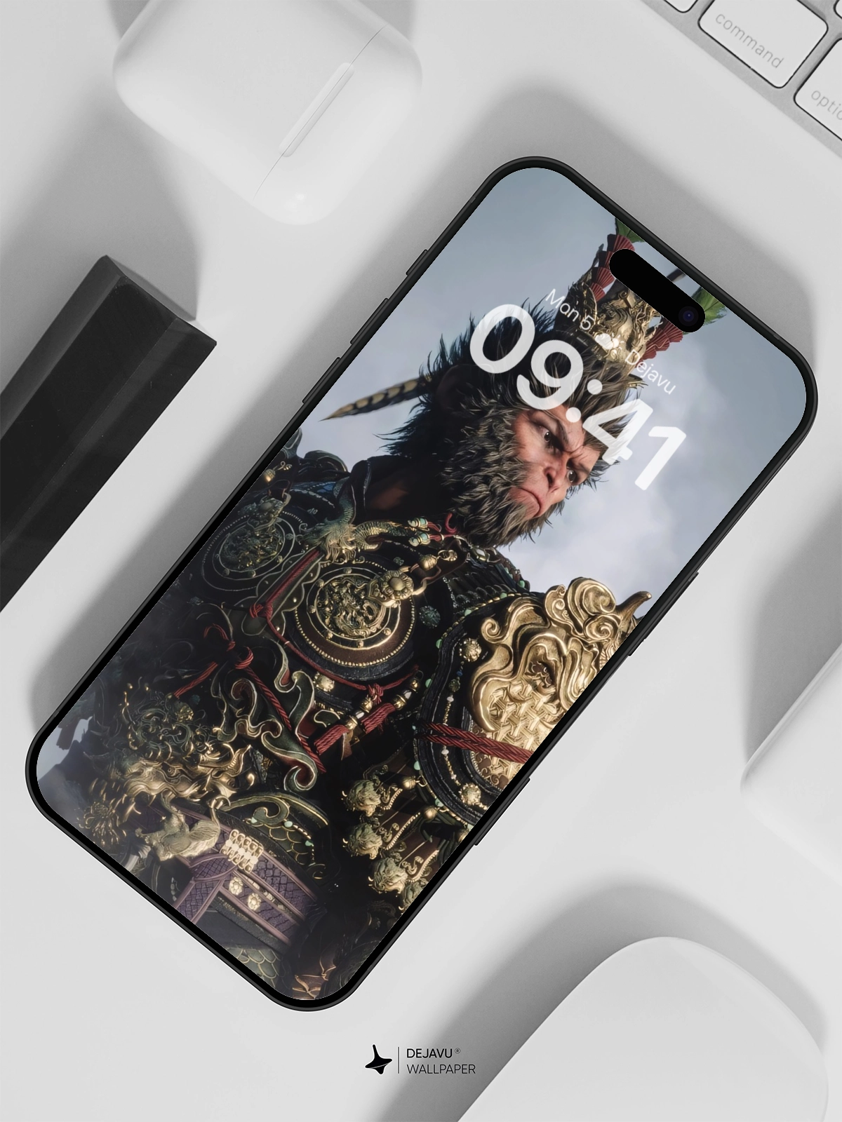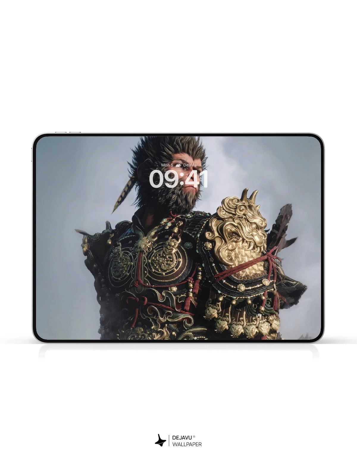 This 8K fantasy warrior illustration showcases a detailed and ornate armor design, perfect for aesthetic wallpapers on iPhone and Android devices. The character exudes a majestic presence with intricate details and a powerful stance, making it an engaging and captivating image for any tech-savvy user.