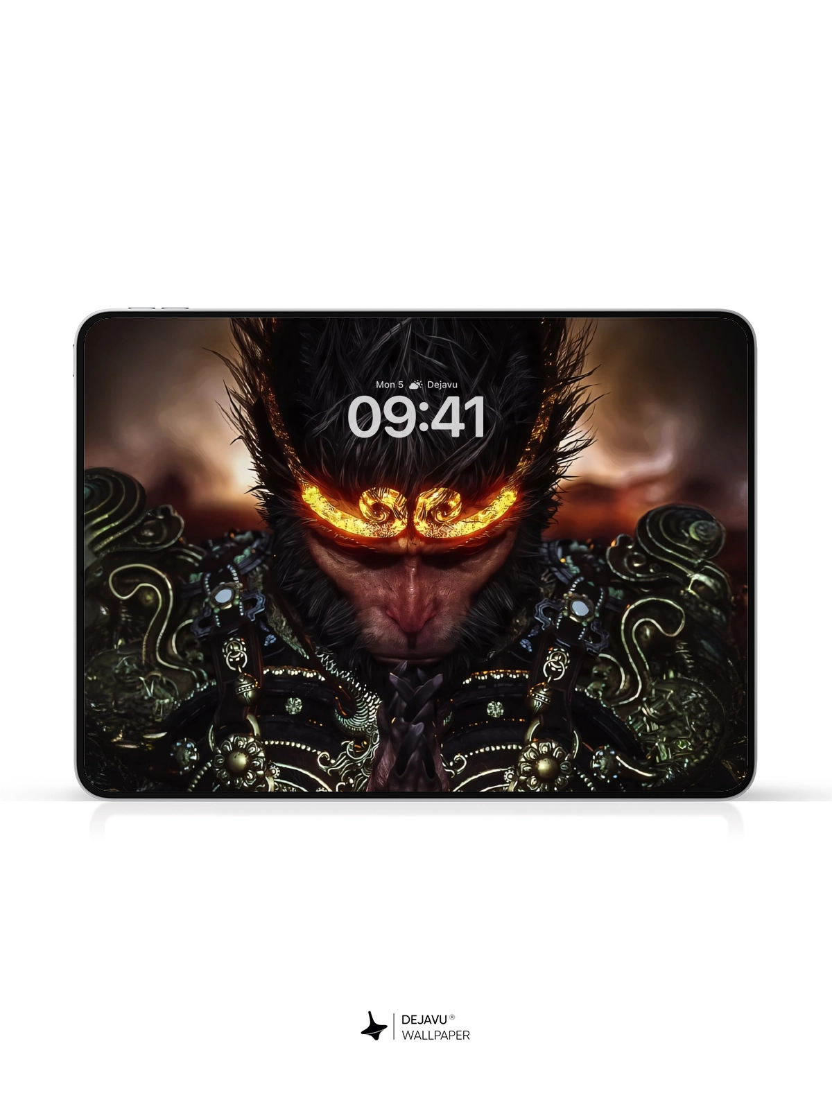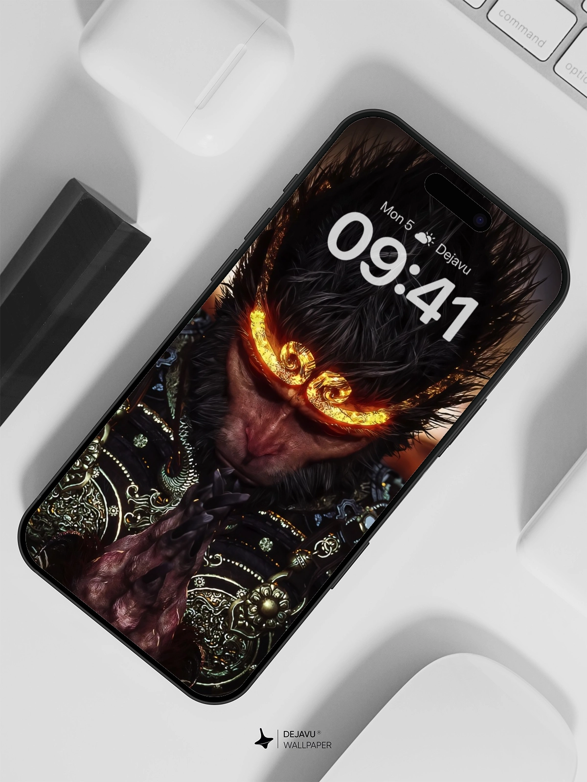 This 8K illustration features a dark and mysterious fantasy warrior with glowing golden eyes and intricate, detailed armor. The design is both captivating and intense, perfect for setting as a wallpaper on your iPhone or Android device. The high resolution ensures clarity and detail on any screen size.
