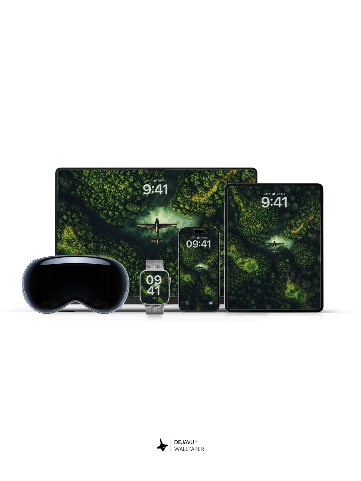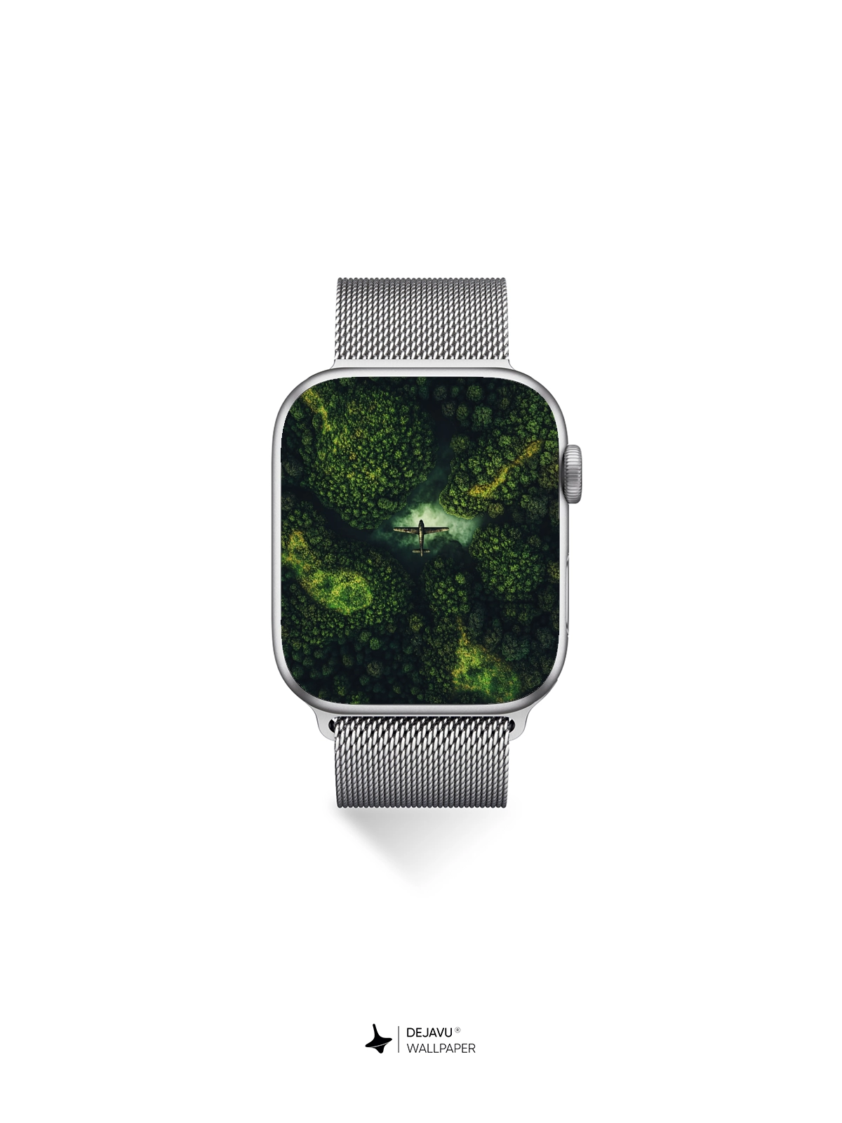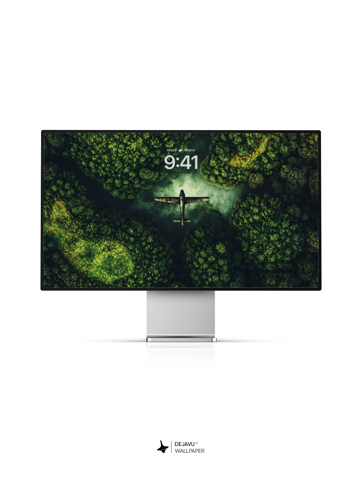 This 8K wallpaper offers a breathtaking aerial view of a dense forest with a plane flying through, creating a unique and captivating scene. The minimalistic design and vibrant green hues make it perfect for enhancing the aesthetic of your iPhone or Android device. Enjoy the serene beauty of nature on your screen.
