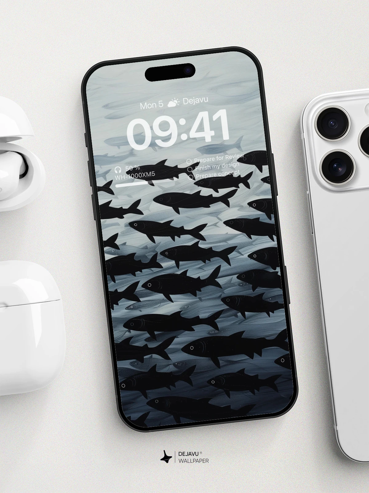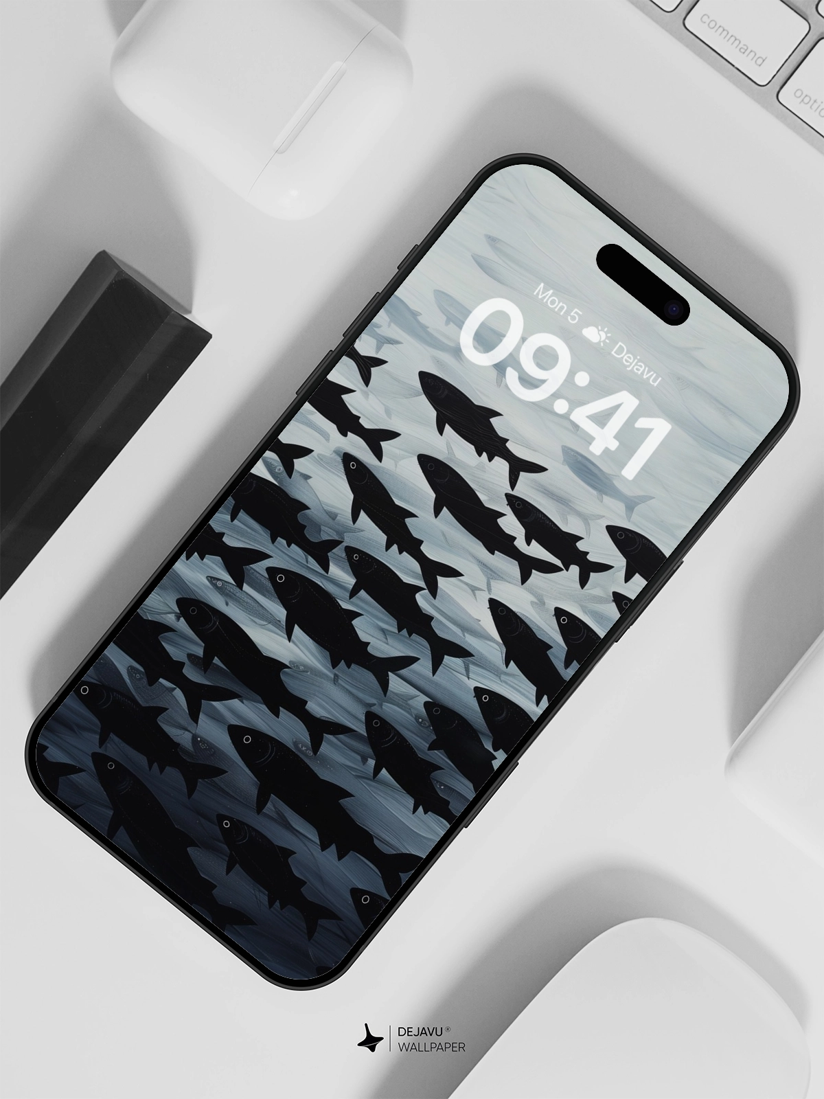 This 8K minimal aesthetic abstract fish painting wallpaper offers a serene and captivating visual experience. The design features a school of fish swimming in a monochromatic ocean, creating a sense of calm and tranquility. Ideal for tech devices like iPhones, Androids, and tablets, this wallpaper adds a touch of elegance and sophistication to any screen.