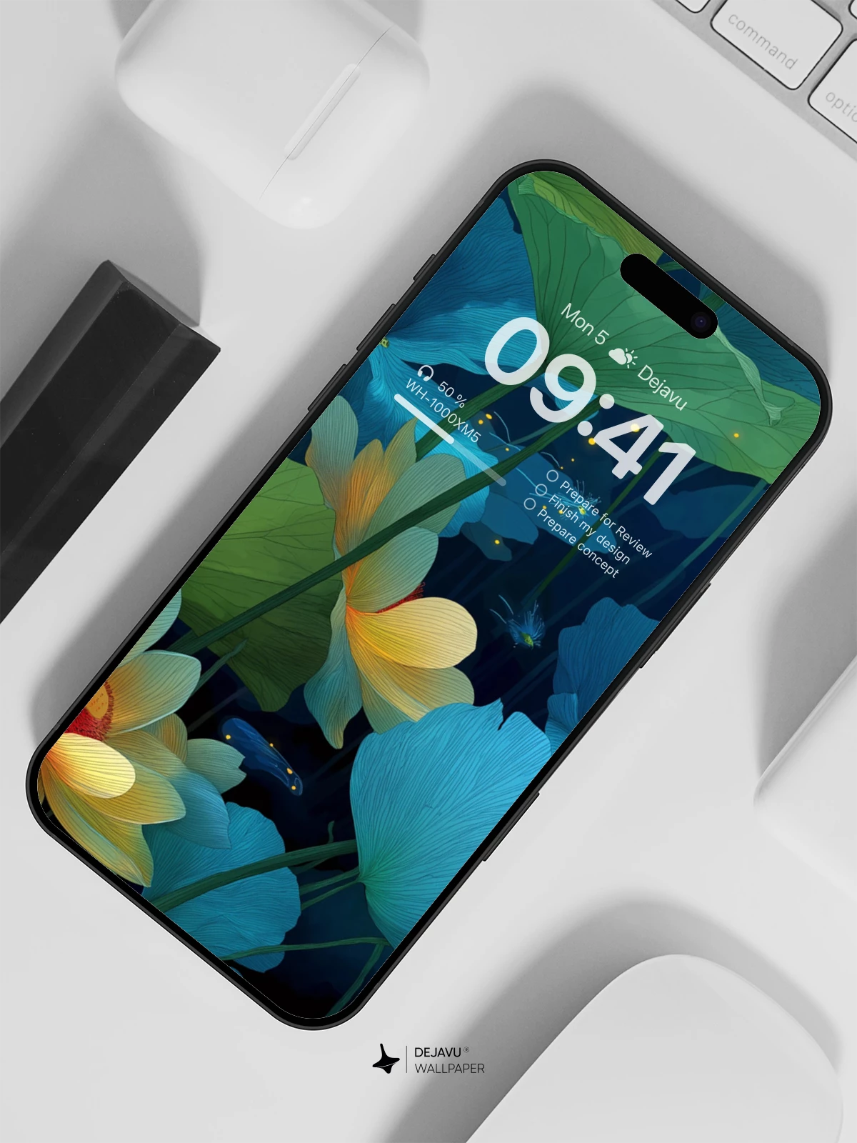 Immerse yourself in the tranquil beauty of this mystical lotus garden, where vibrant blue and yellow flowers bloom under the watchful glow of fireflies. This 8K wallpaper is ideal for enhancing the screens of your iPhone or Android device, bringing a touch of nature’s enchantment to your daily life.
