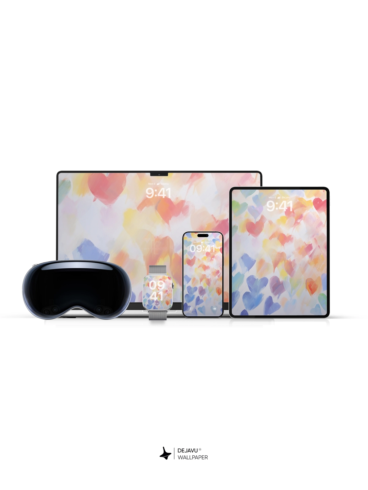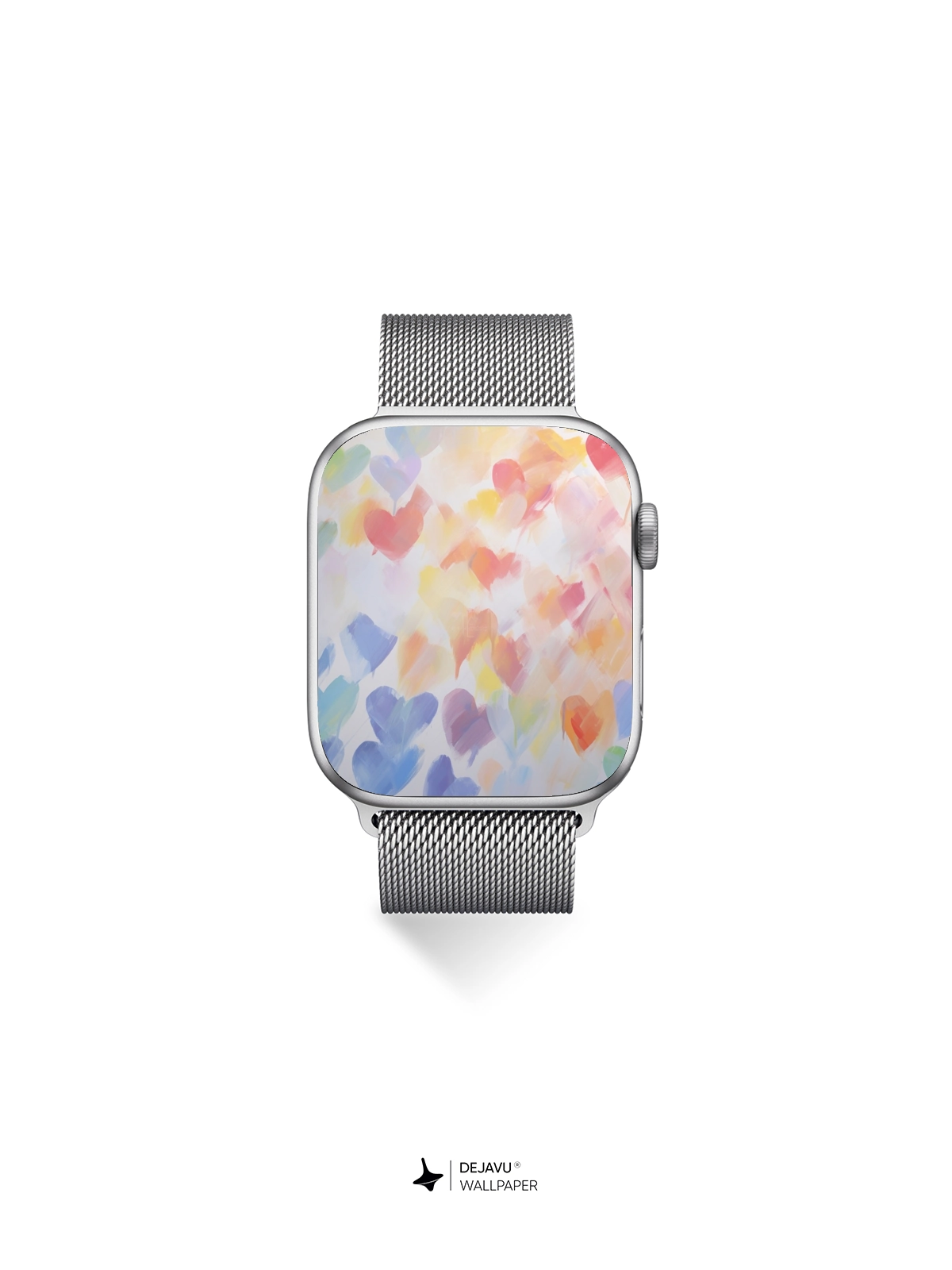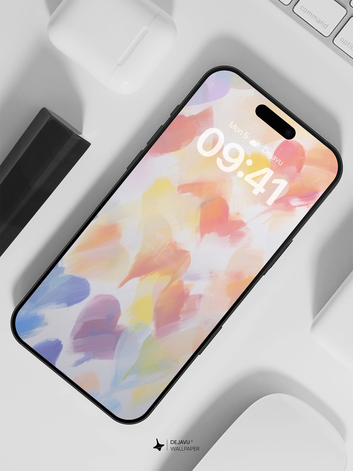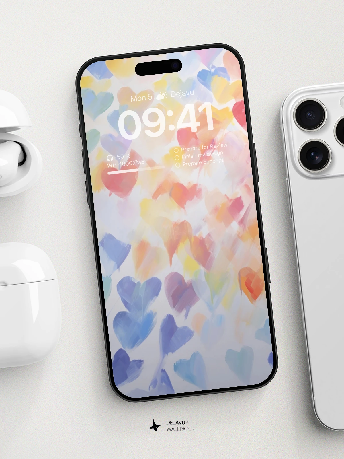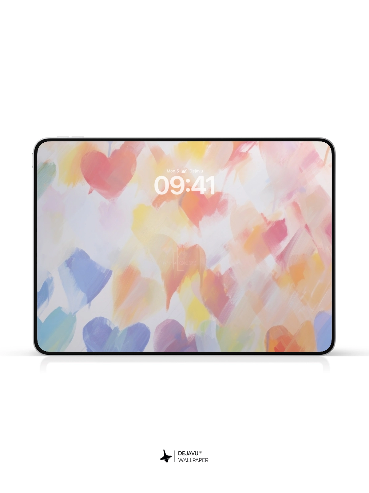 This 8K minimal aesthetic abstract heart wallpaper features a soft gradient of vibrant colors, creating a playful and soothing atmosphere. The heart patterns are artistically painted, making it a unique and engaging background for your iPhone or Android device. Perfect for those who love a blend of tech and art.