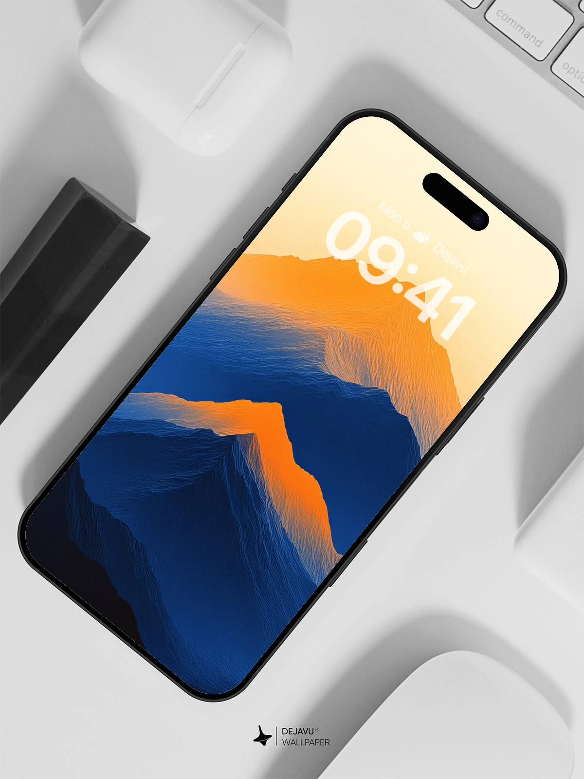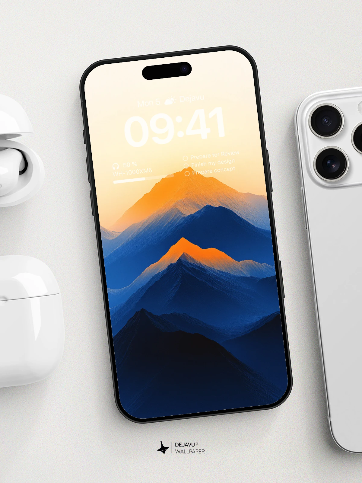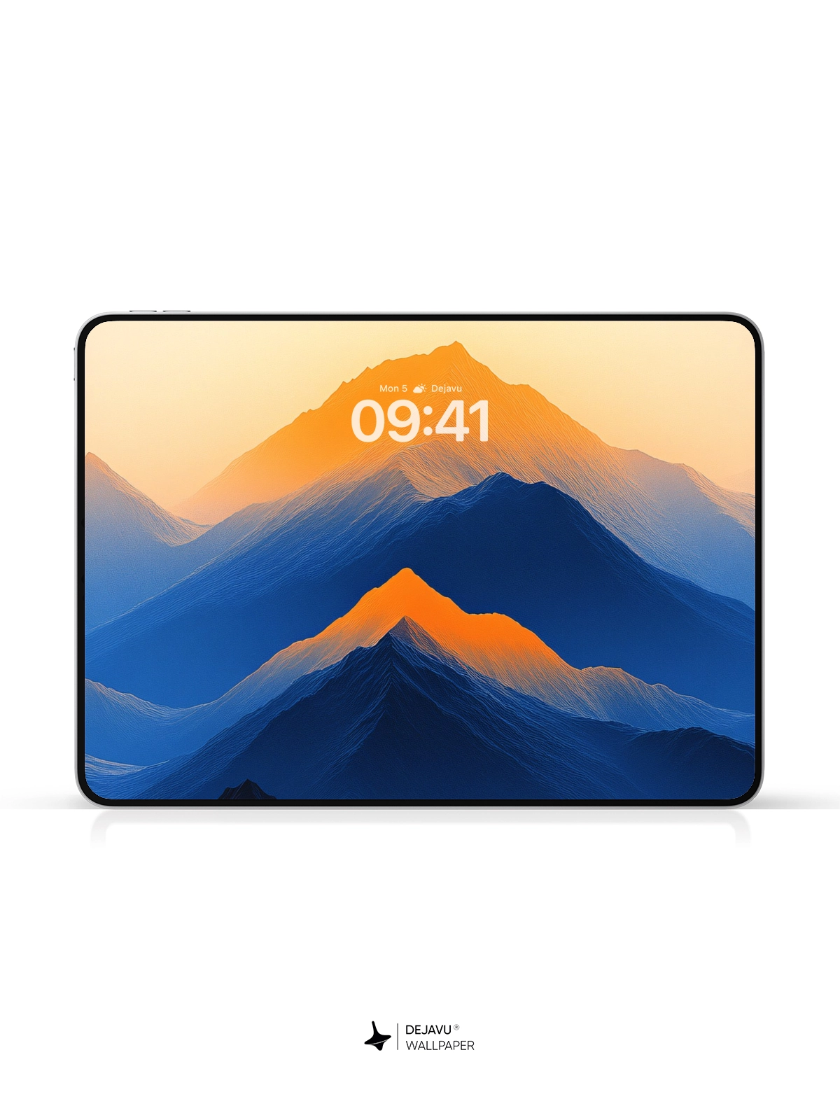 Experience the beauty of nature with this 8K minimal aesthetic abstract mountain wallpaper. The design captures the serene and majestic essence of mountain ranges with a soft gradient that transitions from deep blues to warm oranges. This wallpaper is ideal for enhancing the look of your iPhone or Android device, offering a blend of modern aesthetics and natural inspiration.