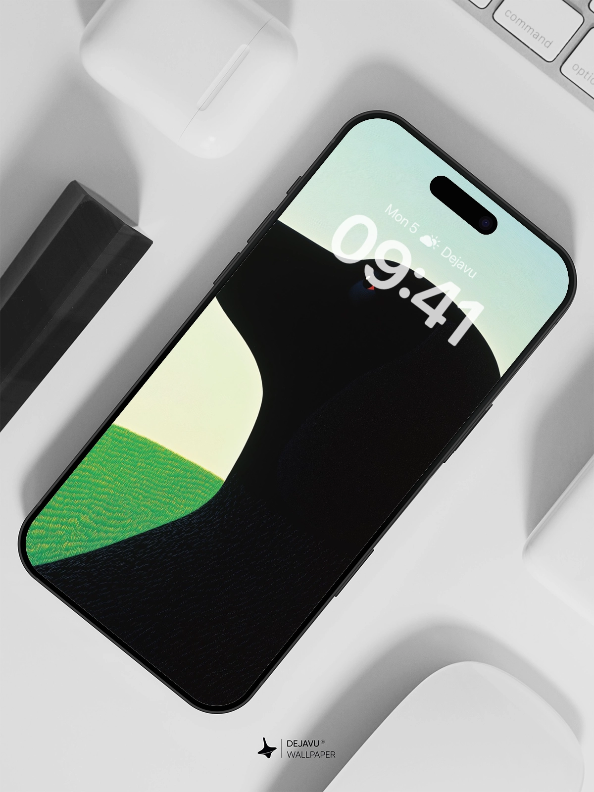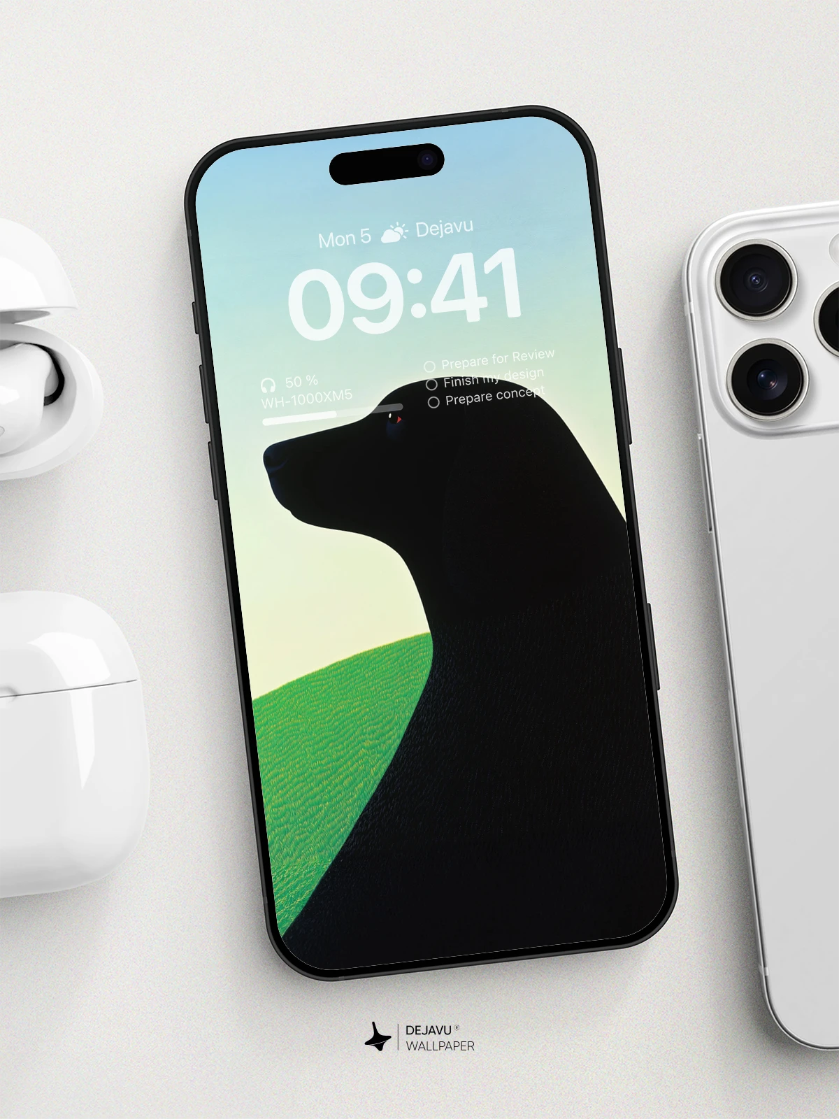 This 8K minimal aesthetic abstract painting captures the serene beauty of a black dog silhouette set against a gradient sky and lush green field. The design is perfect for those who appreciate modern art and nature. Compatible with iPhone, Android, and tablets, this wallpaper adds a touch of elegance and tranquility to any device.