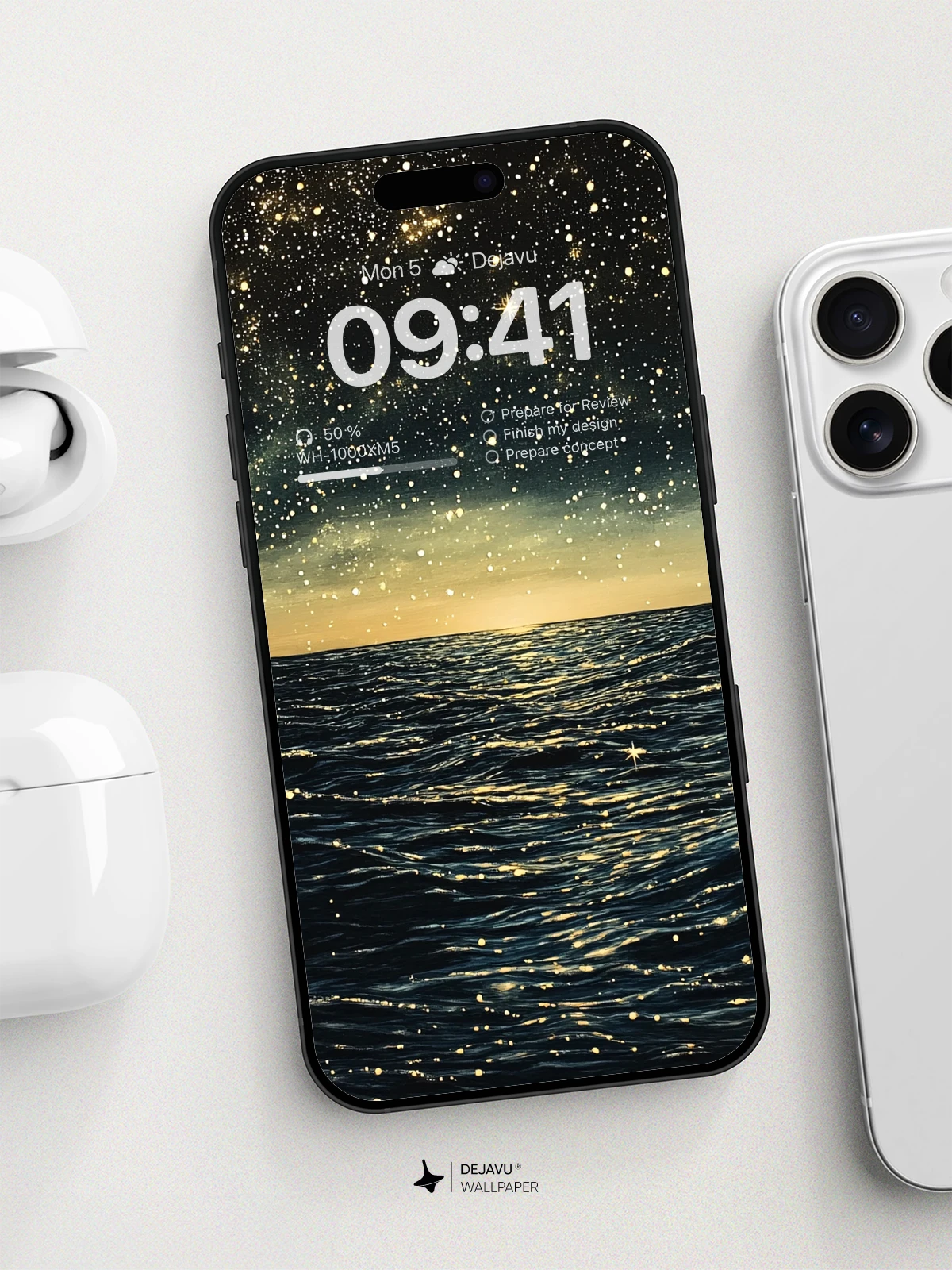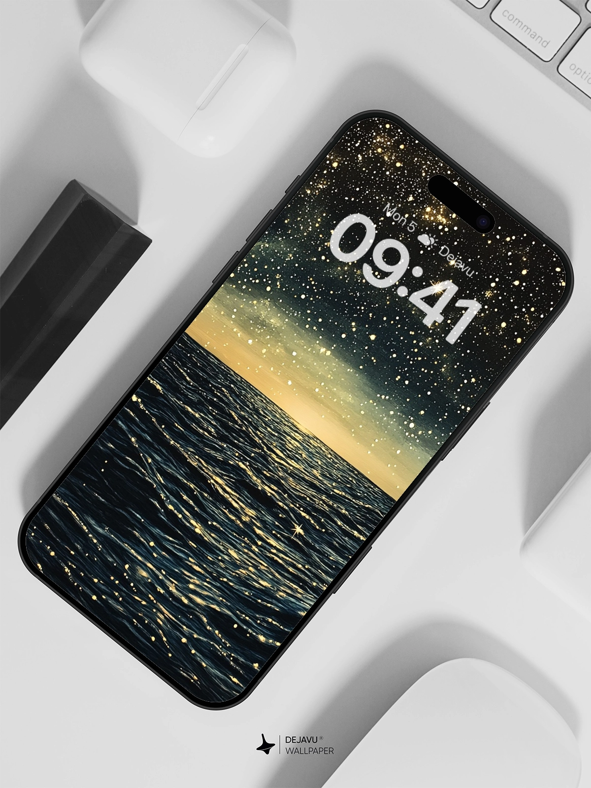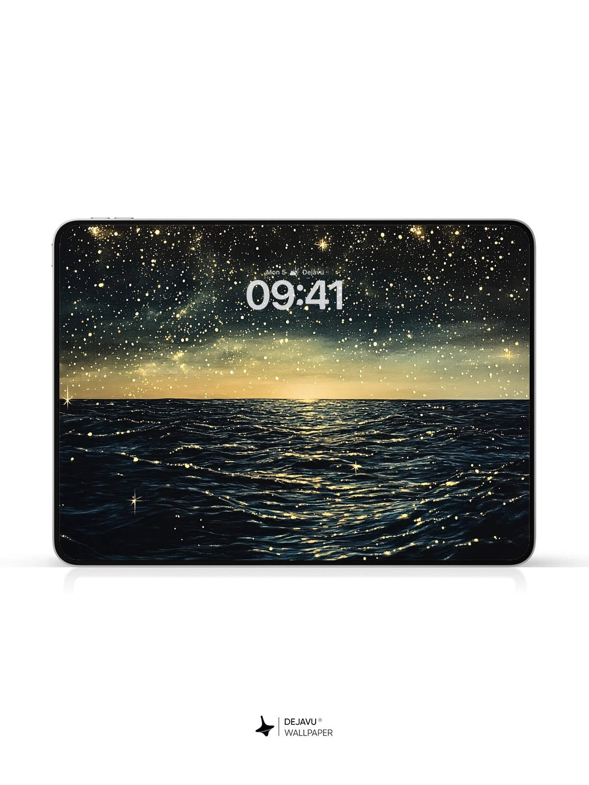This 8K minimal aesthetic abstract painting captures the tranquil essence of a starry night over the ocean. The shimmering stars and gentle waves create a soothing atmosphere, ideal for wallpaper on your iPhone, Android, or tablets. Immerse yourself in the calm and beauty of nature.