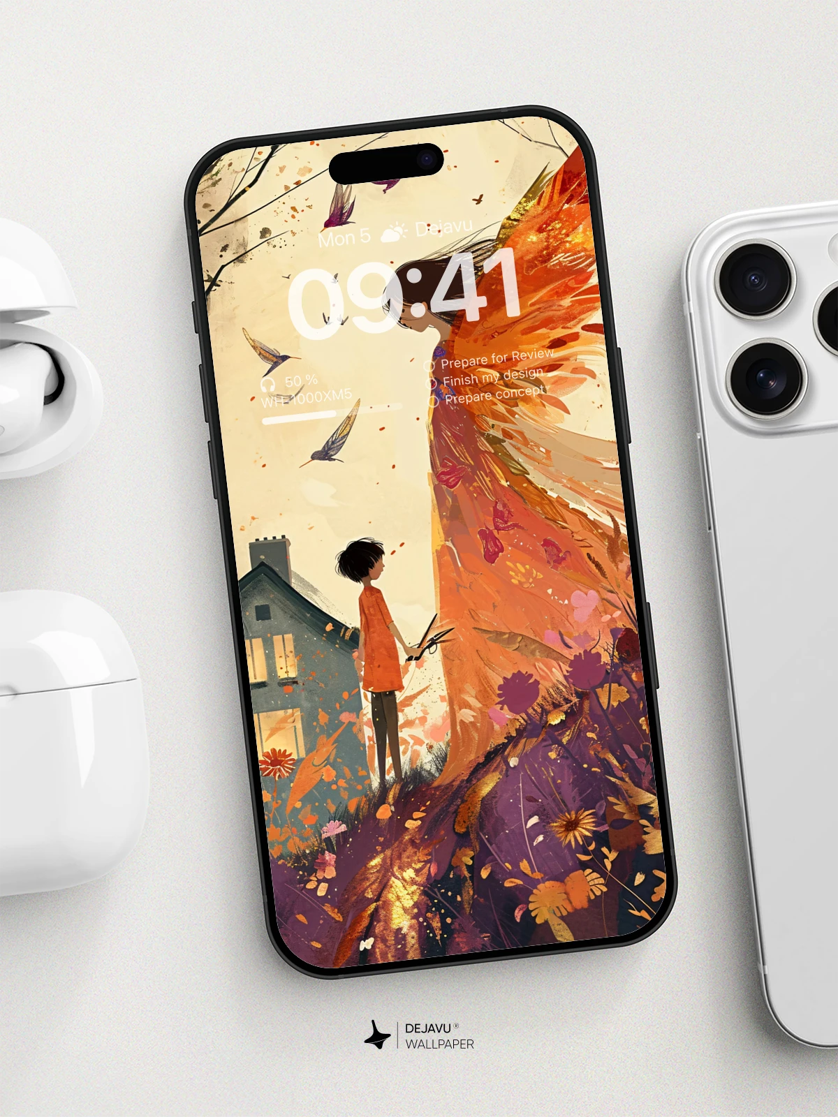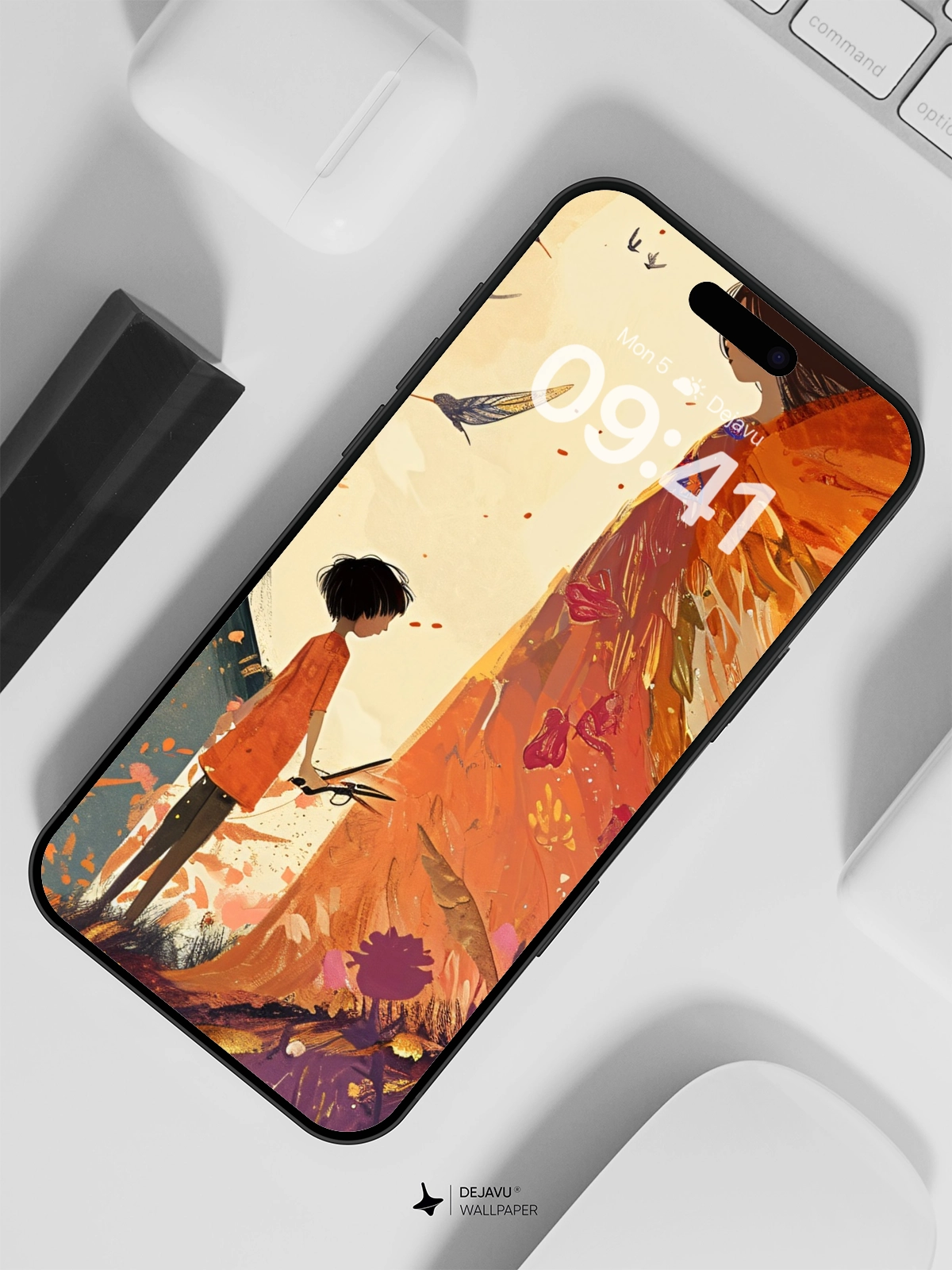 This 8K minimal aesthetic abstract painting wallpaper captures the enchanting moment between a child and a fairy amidst a vibrant autumnal backdrop. The soft gradient colors and detailed illustration evoke a sense of wonder and magic. Perfect for enhancing the screens of your iPhone, Android, or tablets with its high-resolution and captivating design.