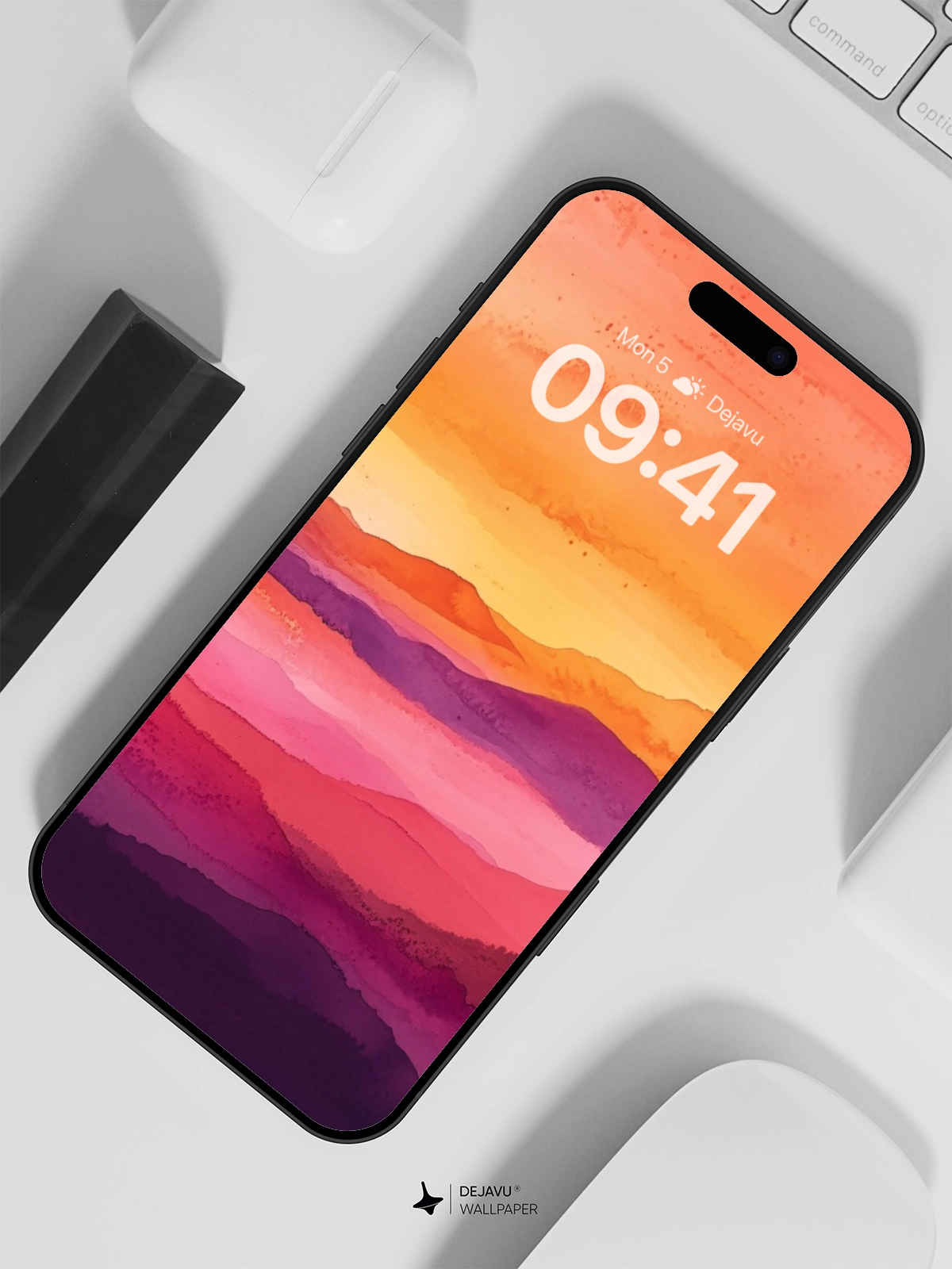 This 8K minimal aesthetic abstract painting wallpaper captures the serene beauty of a sunset over rolling hills. The vibrant gradients and soft hues create a calming and visually appealing design. Perfect for enhancing the look of your iPhone, Android, or tablet screens.