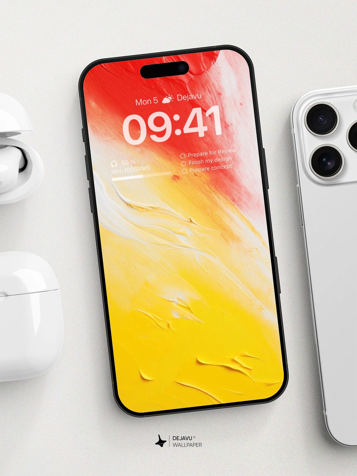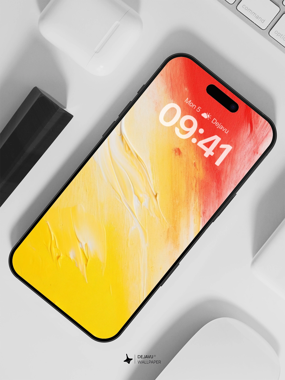 This 8K minimal aesthetic abstract painting wallpaper features a stunning gradient of red, yellow, and white, creating a visually captivating design. Inspired by modern art, it evokes a sense of warmth and energy. Ideal for tech users who want to add a touch of creativity and color to their iPhone, Android, or tablet screens.