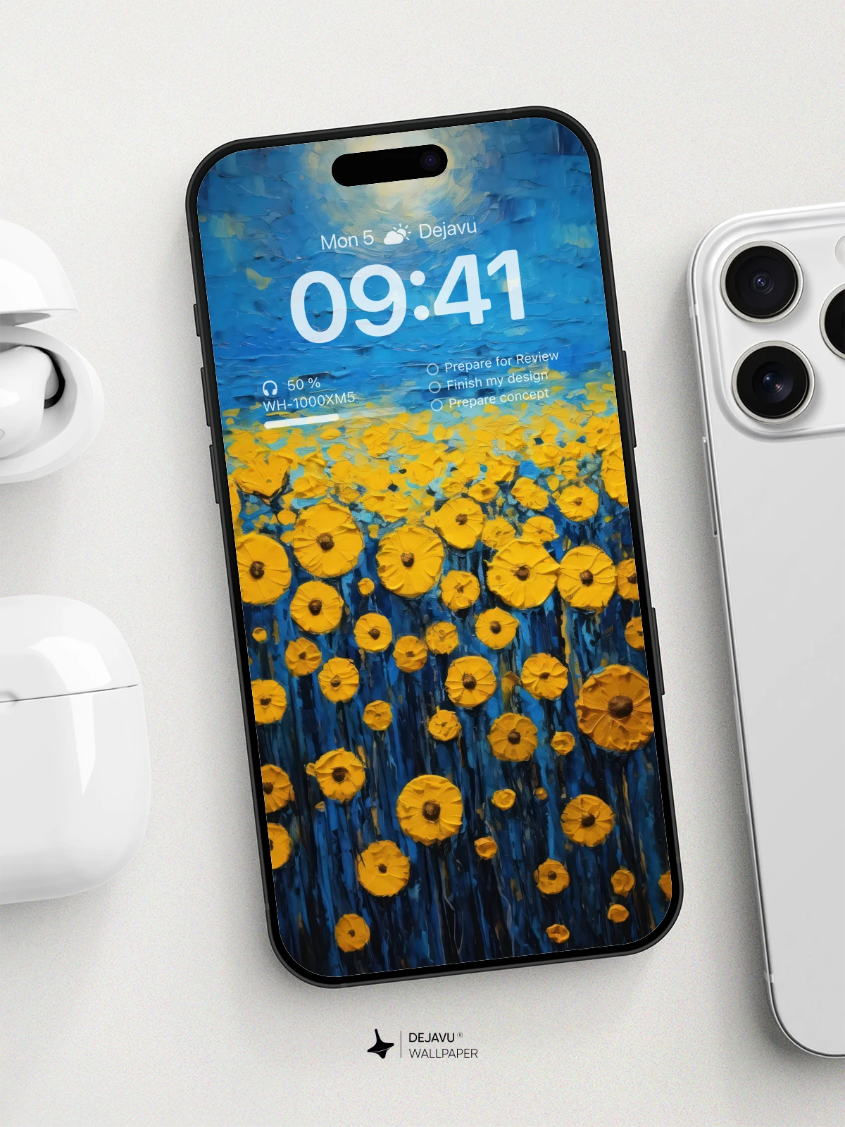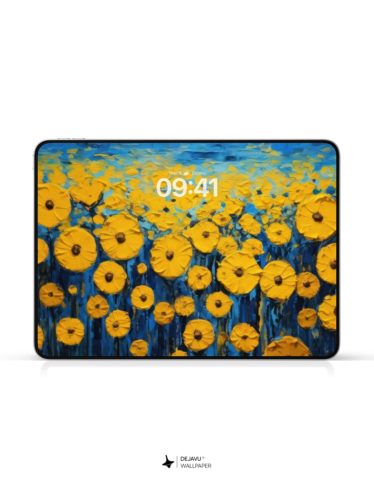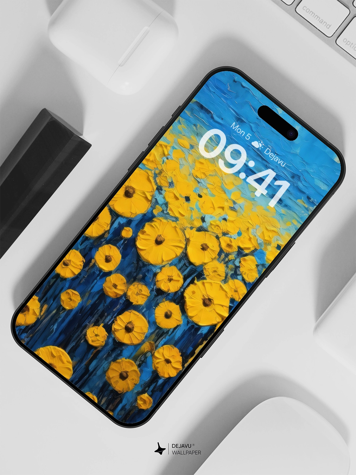 This 8K minimal aesthetic abstract painting wallpaper captures the serene beauty of a field of yellow flowers under a vibrant blue sky. The rich colors and textured brushstrokes evoke a sense of calm and tranquility. Ideal for enhancing the screens of your iPhone, Android, or tablets, this wallpaper adds a touch of nature’s elegance to your device.