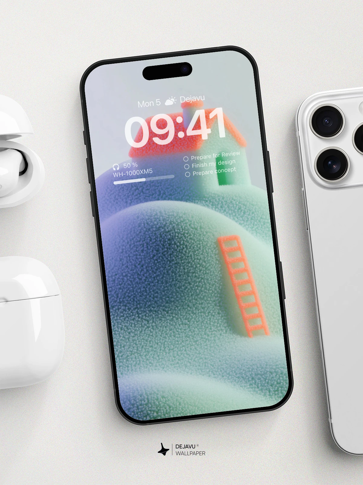 This 8K minimal aesthetic abstract tech wallpaper showcases a charming house perched atop a soft, gradient hill with a ladder leading up to it. The design evokes a sense of calm and wonder, making it ideal for tech enthusiasts and minimalists alike. Perfect for enhancing the look of your iPhone, Android, or tablet screens.