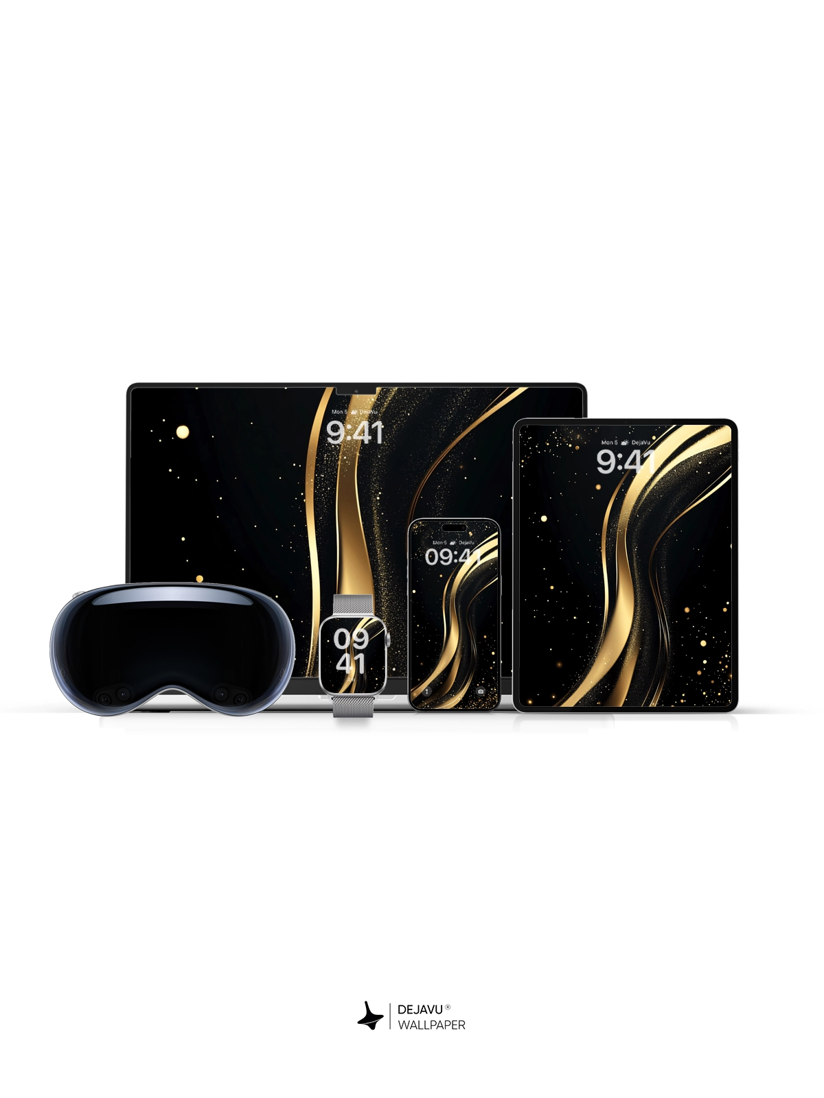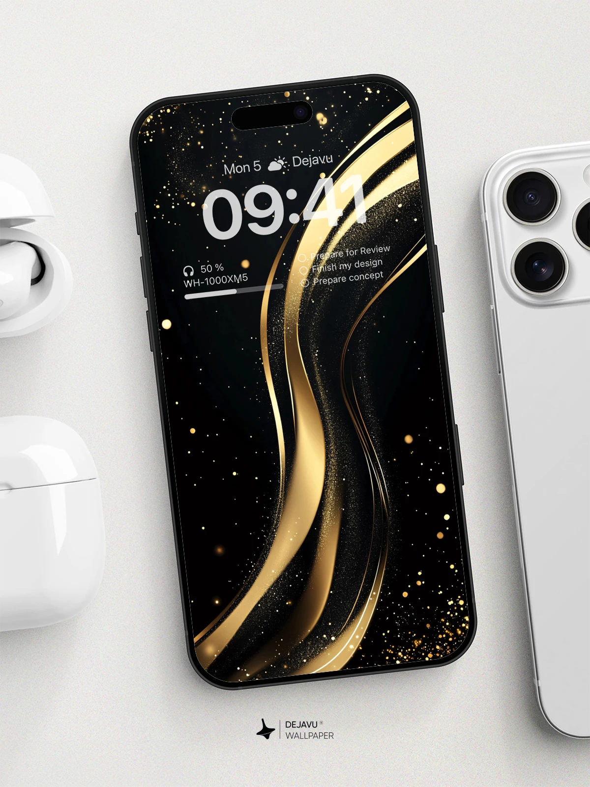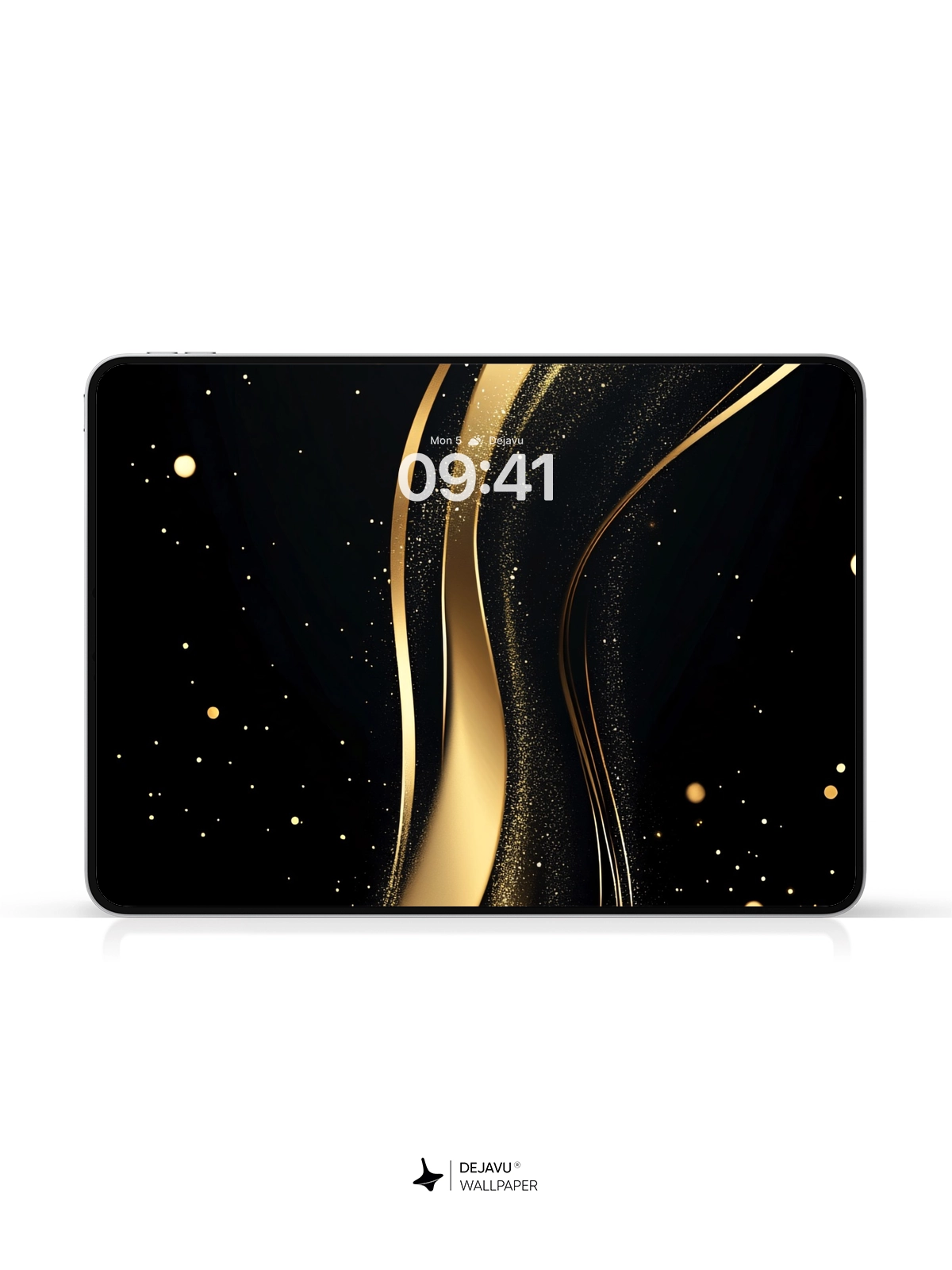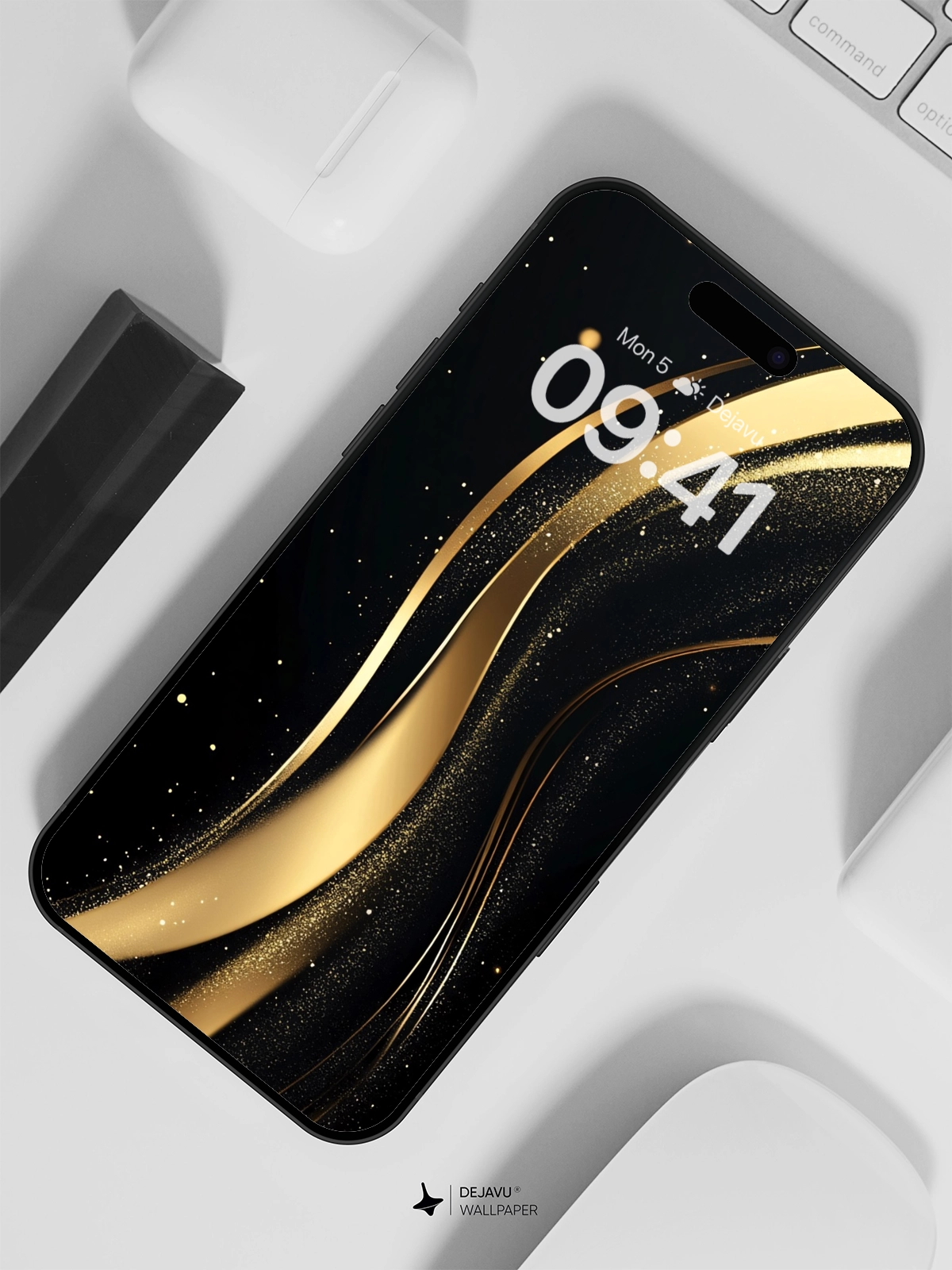 This 8K minimal aesthetic abstract tech wallpaper features a stunning black and gold design with sparkling particles that add a touch of luxury. The sleek curves and glittering effects create a modern and sophisticated look, ideal for tech enthusiasts. Compatible with iPhone, Android, and tablets, this wallpaper will elevate your device’s appearance with its high-resolution and captivating design.