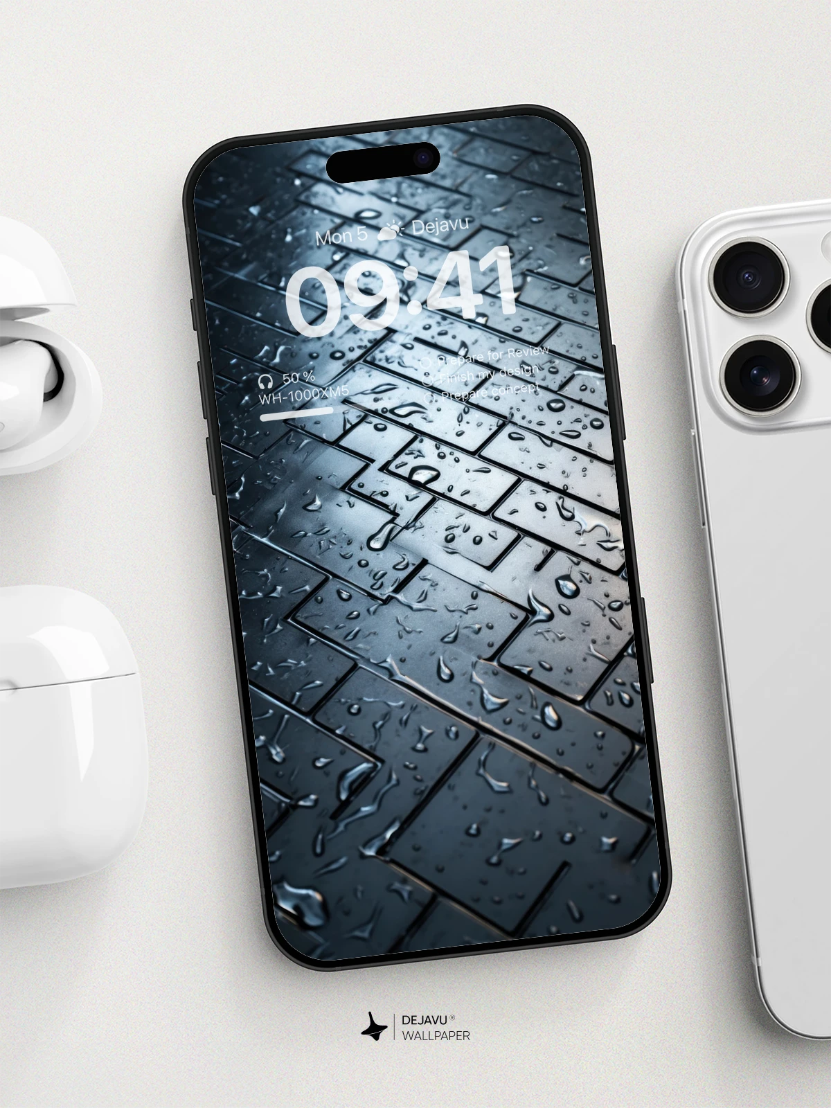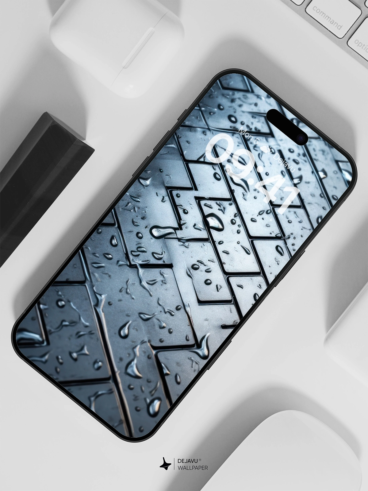 This 8K minimal aesthetic abstract tech wallpaper showcases a stunning array of water droplets on a dark, reflective surface. The design is both modern and elegant, evoking a sense of calm and sophistication. Ideal for enhancing the look of your iPhone or Android device, this wallpaper adds a touch of futuristic charm to your screens.