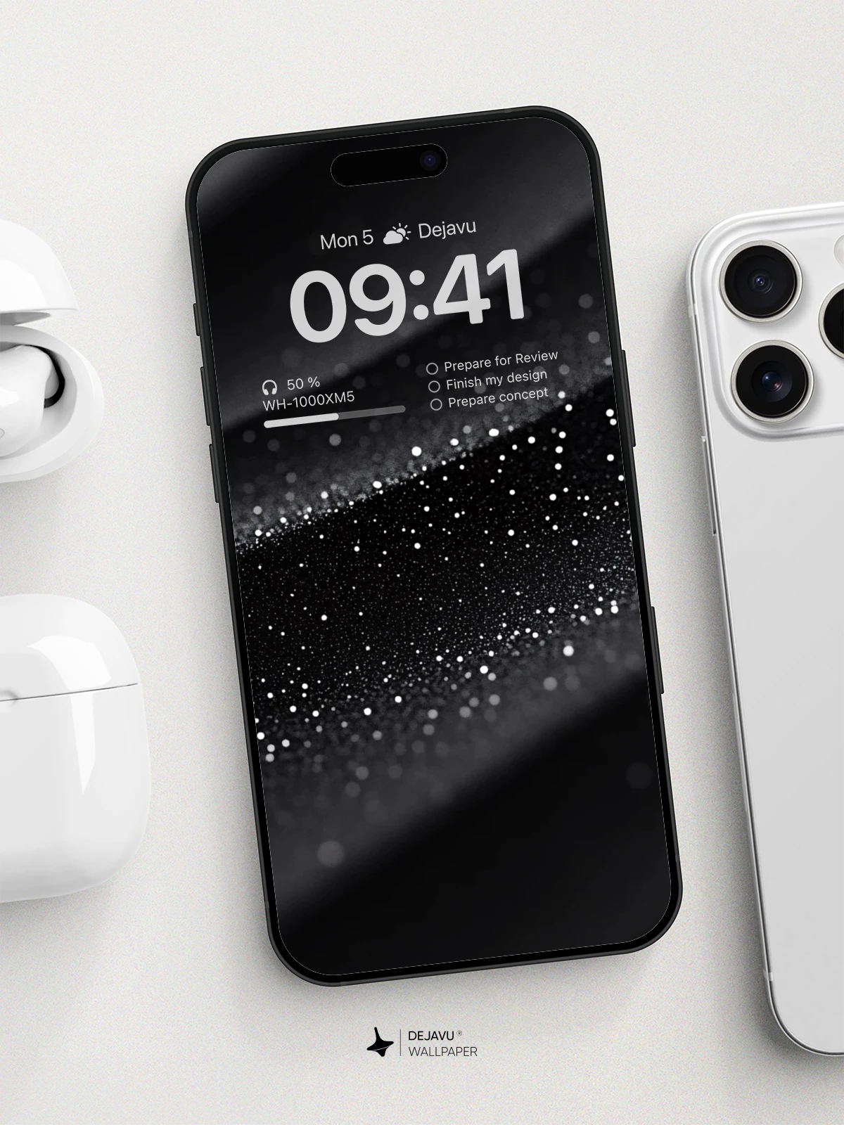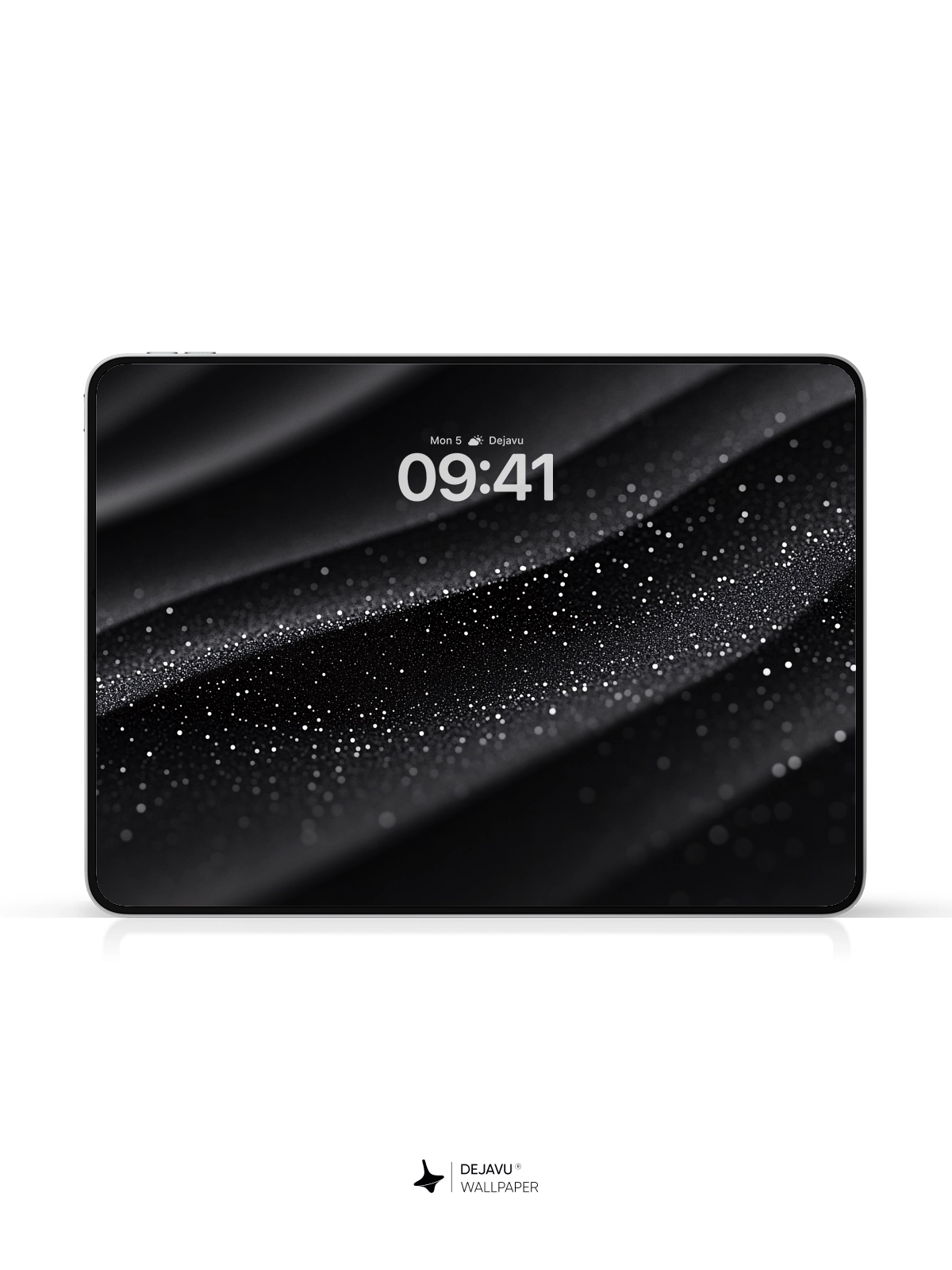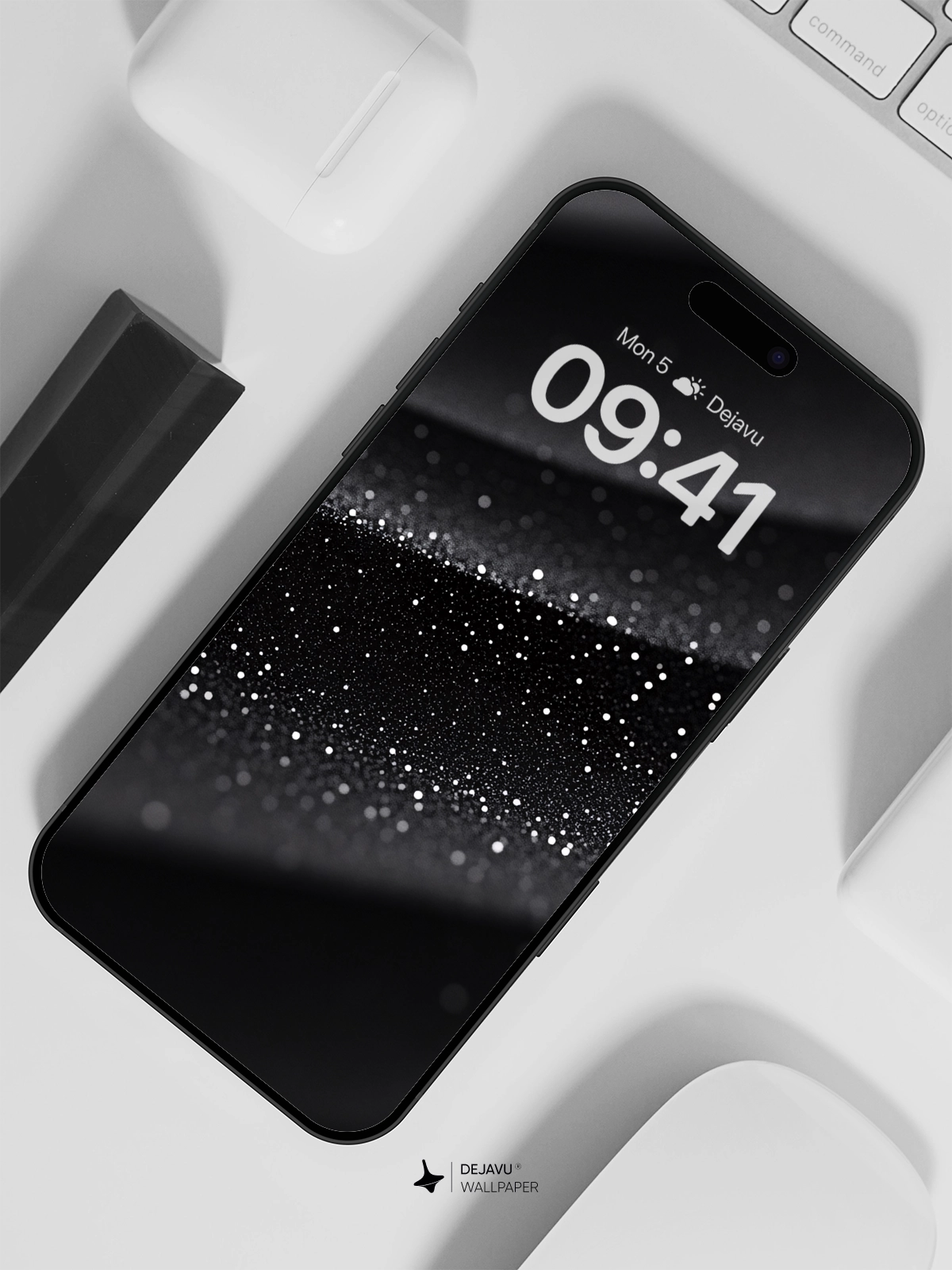 Experience the elegance of this 8K minimal aesthetic abstract tech wallpaper. The sleek black background is adorned with sparkling white dots, creating a mesmerizing effect. Ideal for tech lovers, this wallpaper adds a touch of sophistication to your iPhone, Android, or tablet screens.