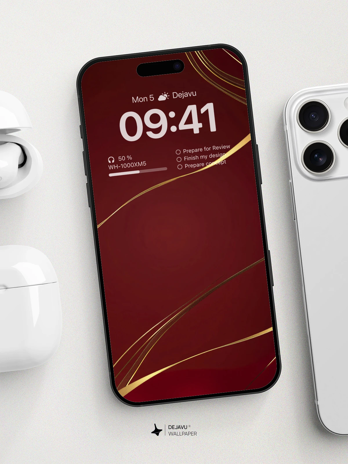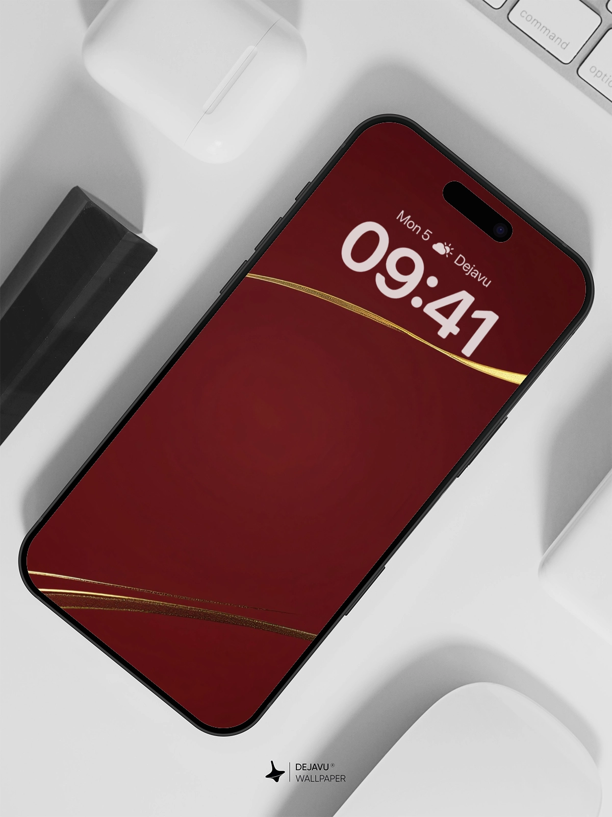 This 8K minimal aesthetic abstract wallpaper features a deep red background complemented by elegant golden lines, creating a sophisticated and modern look. Inspired by the sleek design of tech gadgets, it evokes a sense of luxury and innovation. Perfect for enhancing the screens of your iPhone, Android, or tablets, this wallpaper adds a touch of class to any device.