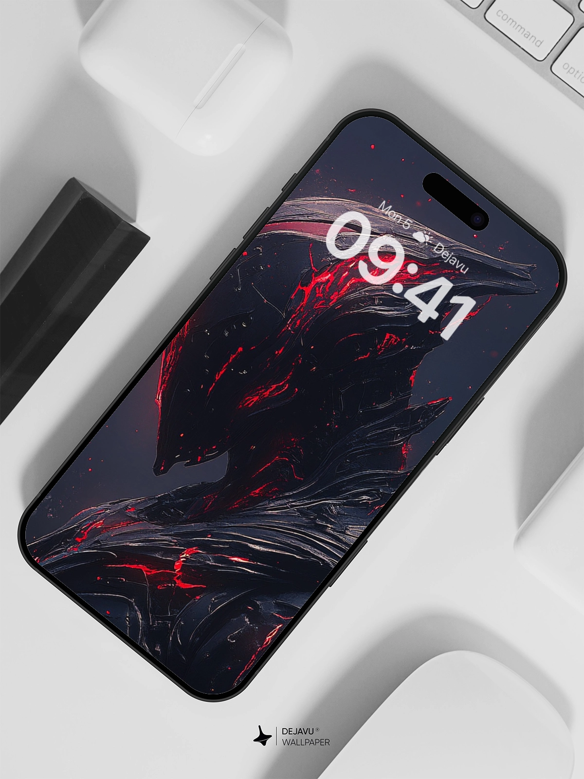 This 8K wallpaper showcases a futuristic and minimalistic design with a dark, sleek background and glowing red accents. The abstract elements create a sense of depth and mystery, making it ideal for tech enthusiasts and gamers. Compatible with iPhone, Android, and tablets, this wallpaper adds a touch of modern elegance to any device.