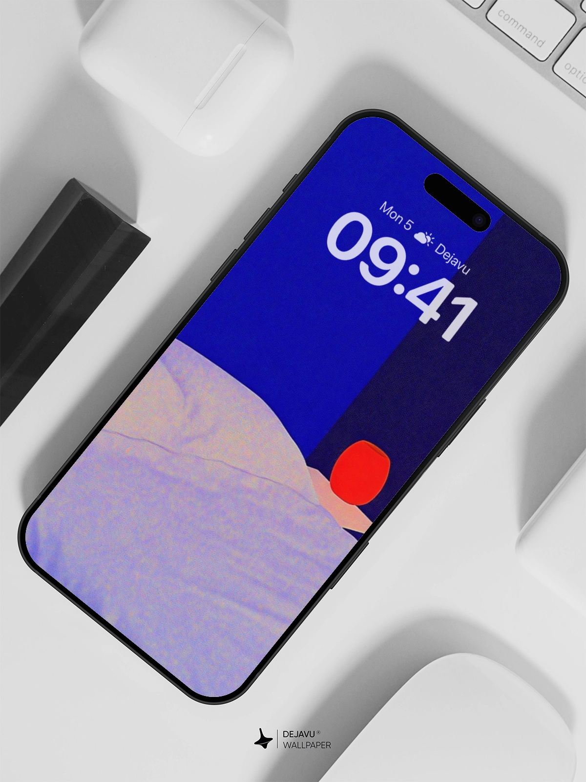 This 8K minimal aesthetic abstract tech wallpaper captures the essence of simplicity and modernity. The image showcases a serene bedroom scene with a plush white bed and a vibrant red lamp set against a deep blue background. The contrast between the soft, inviting bed and the bold, striking lamp creates a visually appealing balance. Ideal for tech enthusiasts and those who appreciate clean, modern design, this wallpaper is compatible with iPhone, Android, and tablets, offering a high-resolution, engaging backdrop that enhances any device.