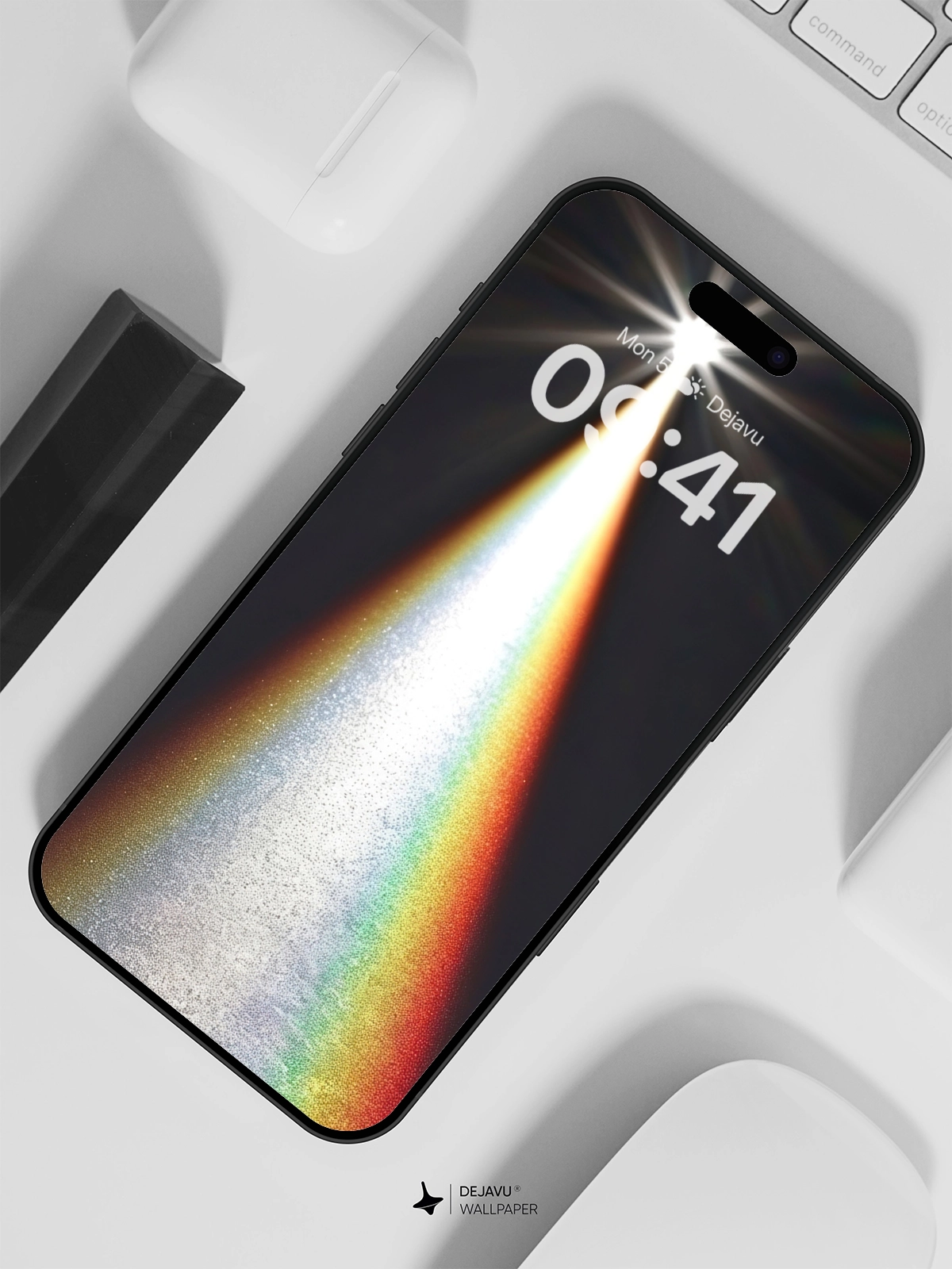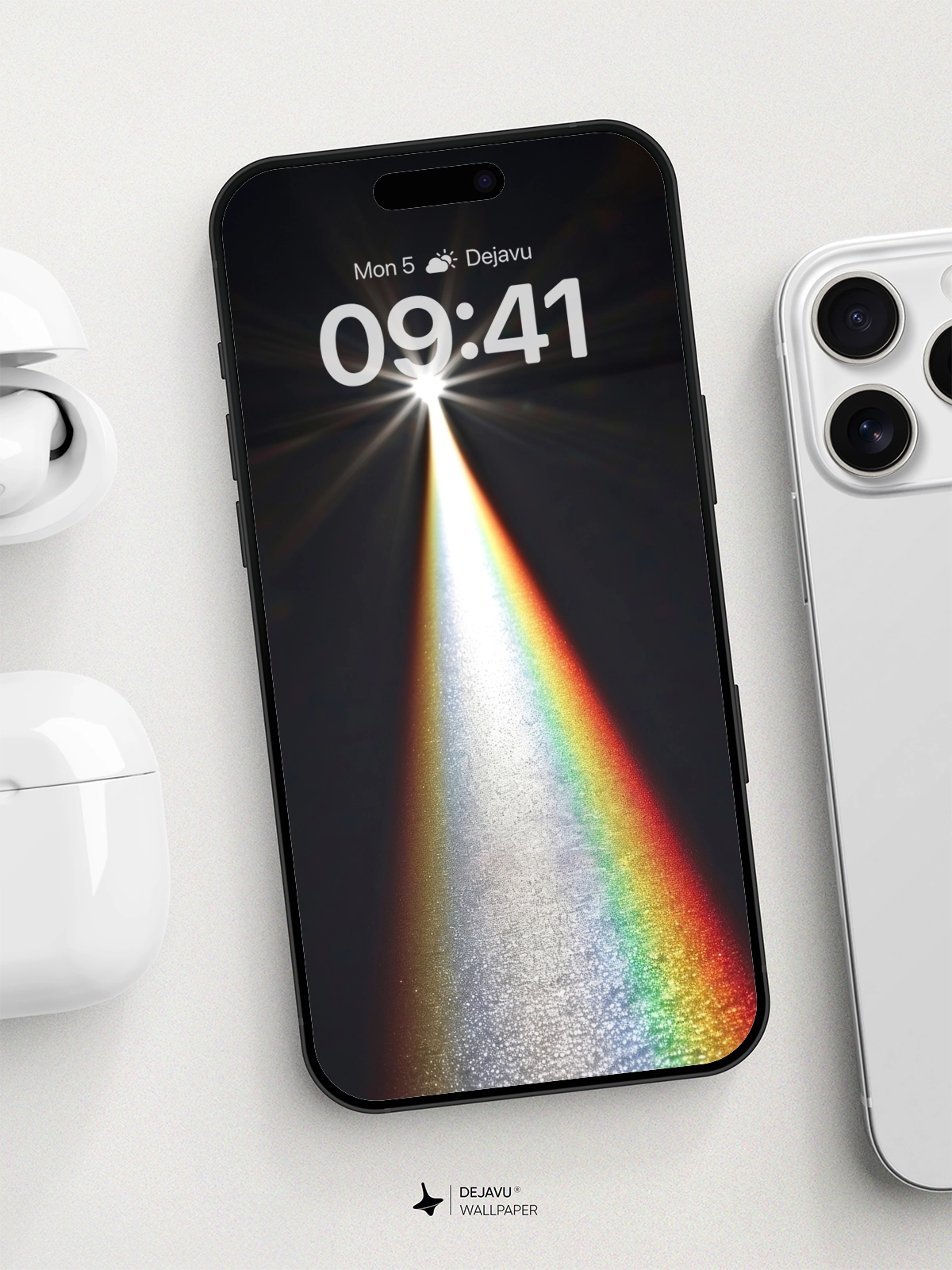 This 8K minimal aesthetic abstract wallpaper showcases a captivating light beam effect with a rainbow gradient, creating a futuristic and tech-inspired vibe. The design is perfect for enhancing the look of your iPhone or Android device, offering a blend of modern aesthetics and visual appeal.