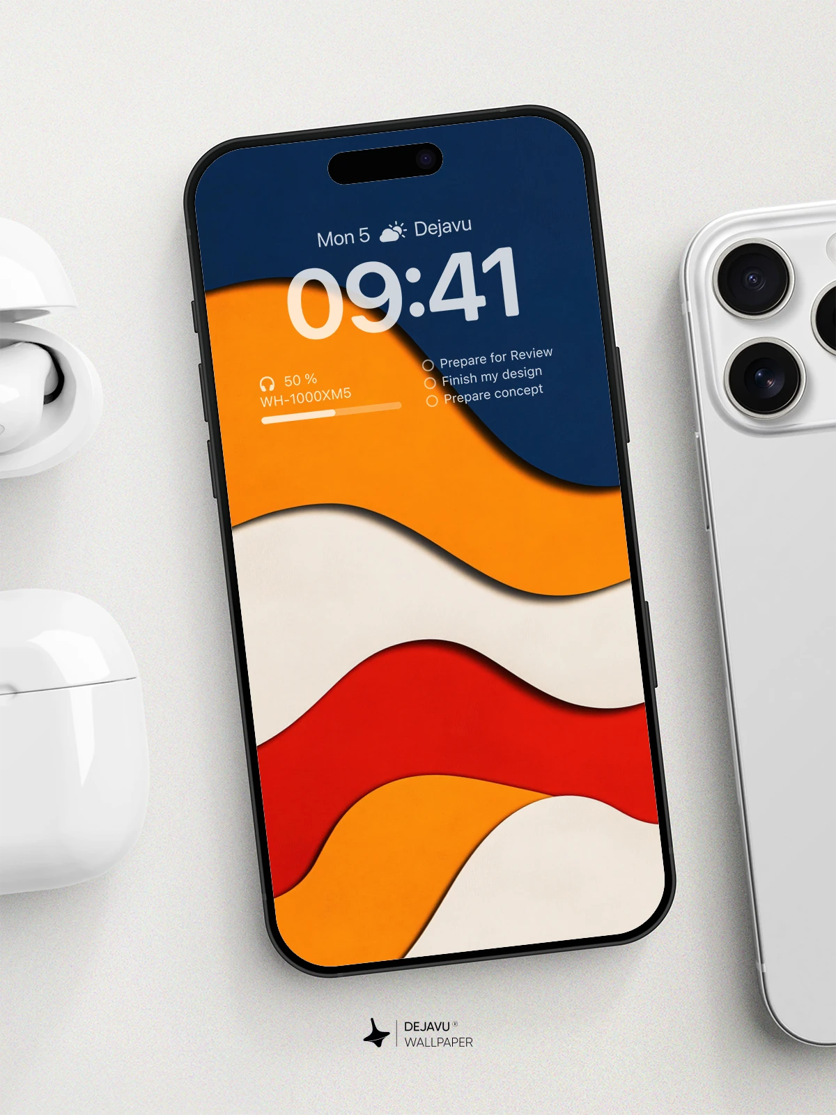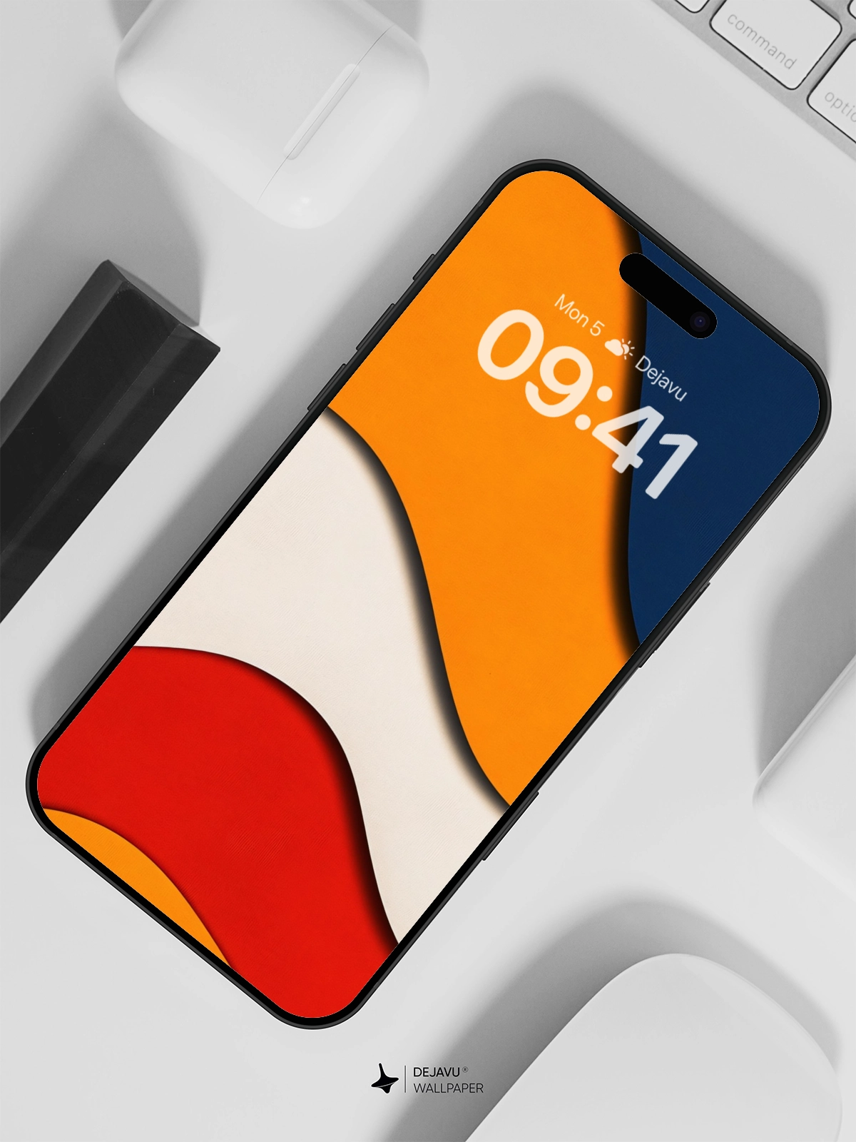 This 8K minimal aesthetic abstract wallpaper features a stunning design with wavy layers in bold colors of blue, orange, white, and red. The smooth gradients and clean lines evoke a sense of modernity and sophistication, making it ideal for tech enthusiasts. Compatible with both iPhone and Android devices, this wallpaper adds a touch of elegance and vibrancy to any screen.