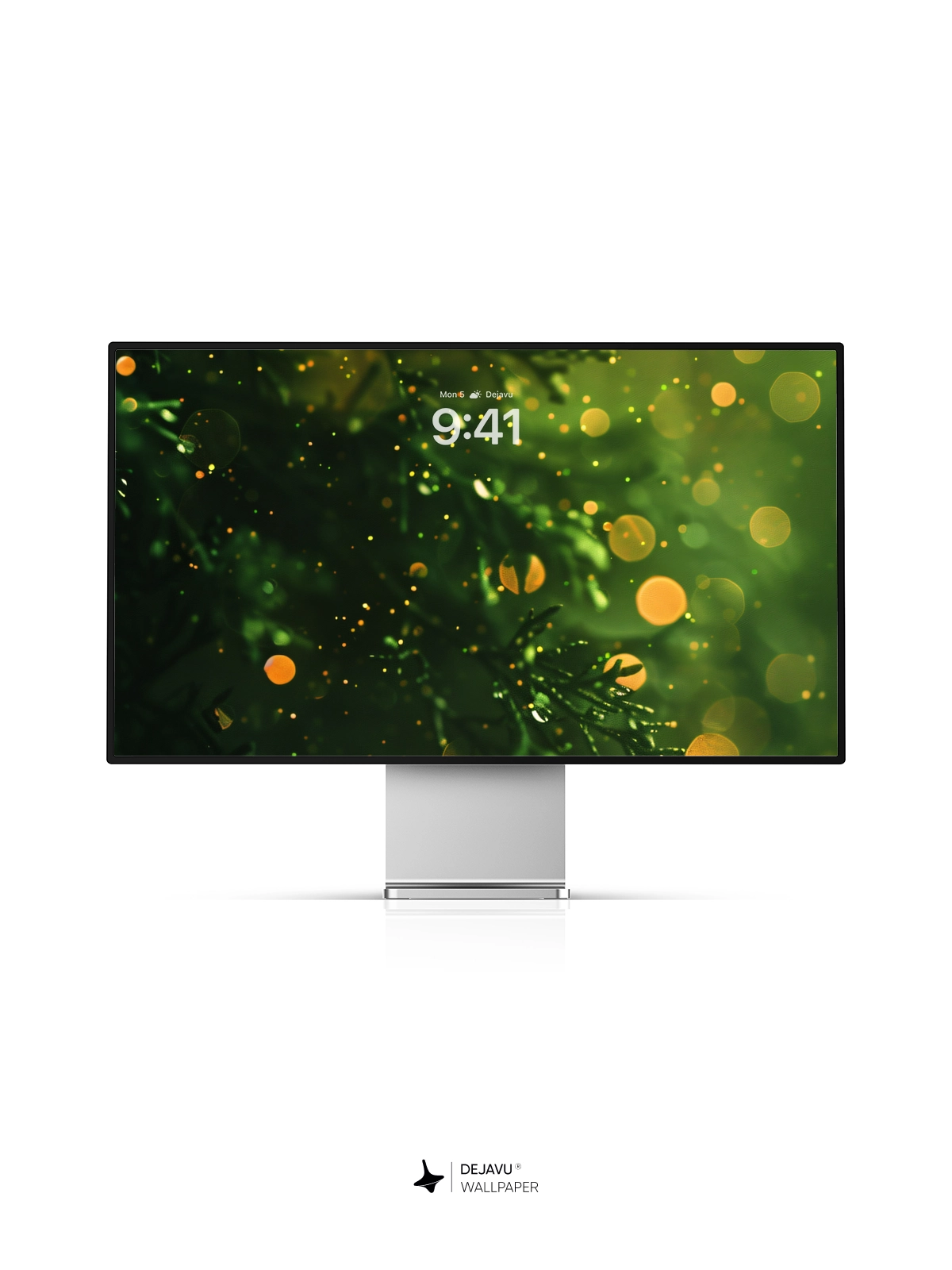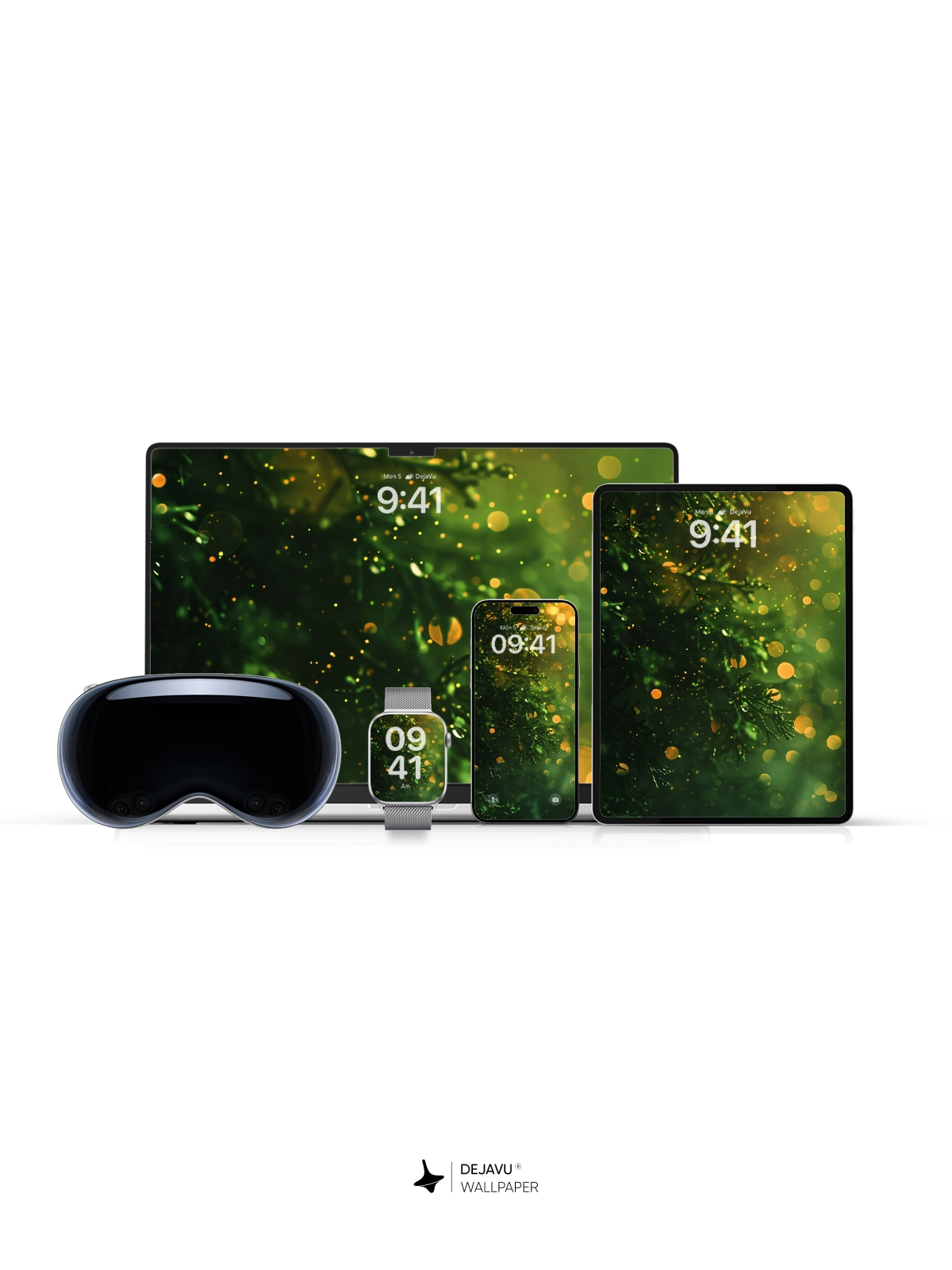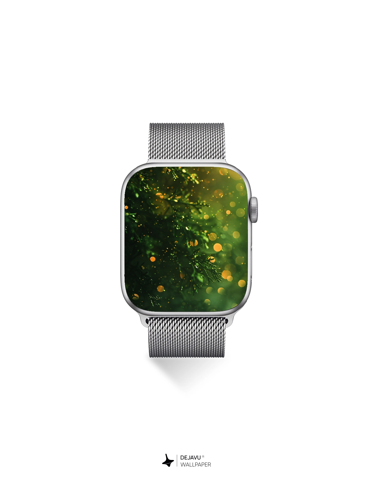 Immerse yourself in the enchanting beauty of nature with this 8K minimal aesthetic wallpaper. The image captures the essence of a lush green forest adorned with sparkling golden bokeh lights, creating a serene and magical atmosphere. Perfect for enhancing the screens of your iPhone, Android, or tablets, this wallpaper brings a touch of natural elegance and tranquility to your device.